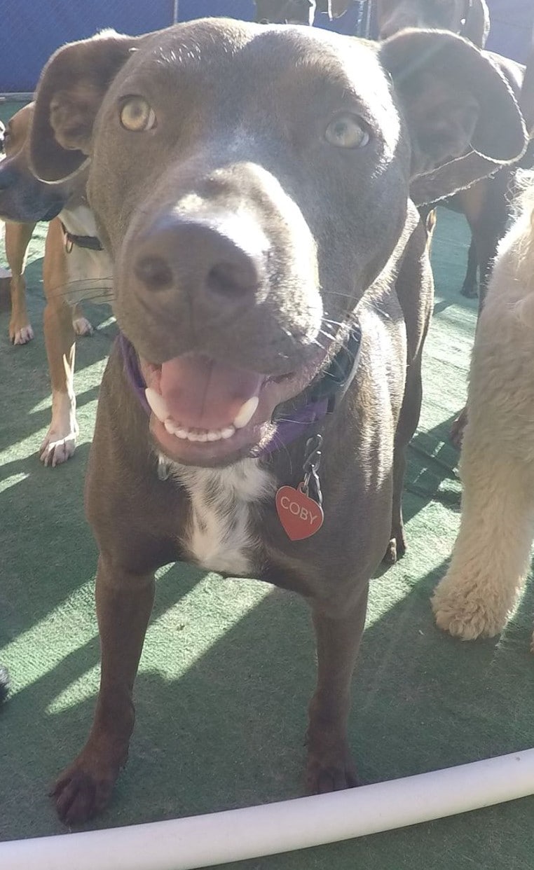 Coby started coming to see us just days after his mom sprung him from the shelter. We were a little worried he would be nervous, or think mom had abandoned him… boy were we wrong! Coby jumped into play at CBA like he was BORN to be here! Coby is always the MOST excited to play each day and never seems to tire of the fun. With his loving, patient mom, we work daily on his obedience training and name recall, all so he can continue to live his best life! ? We love how excited Coby is to see us, and we are honored he chooses to spend his days with us! Congratulations, Coby! We love you!