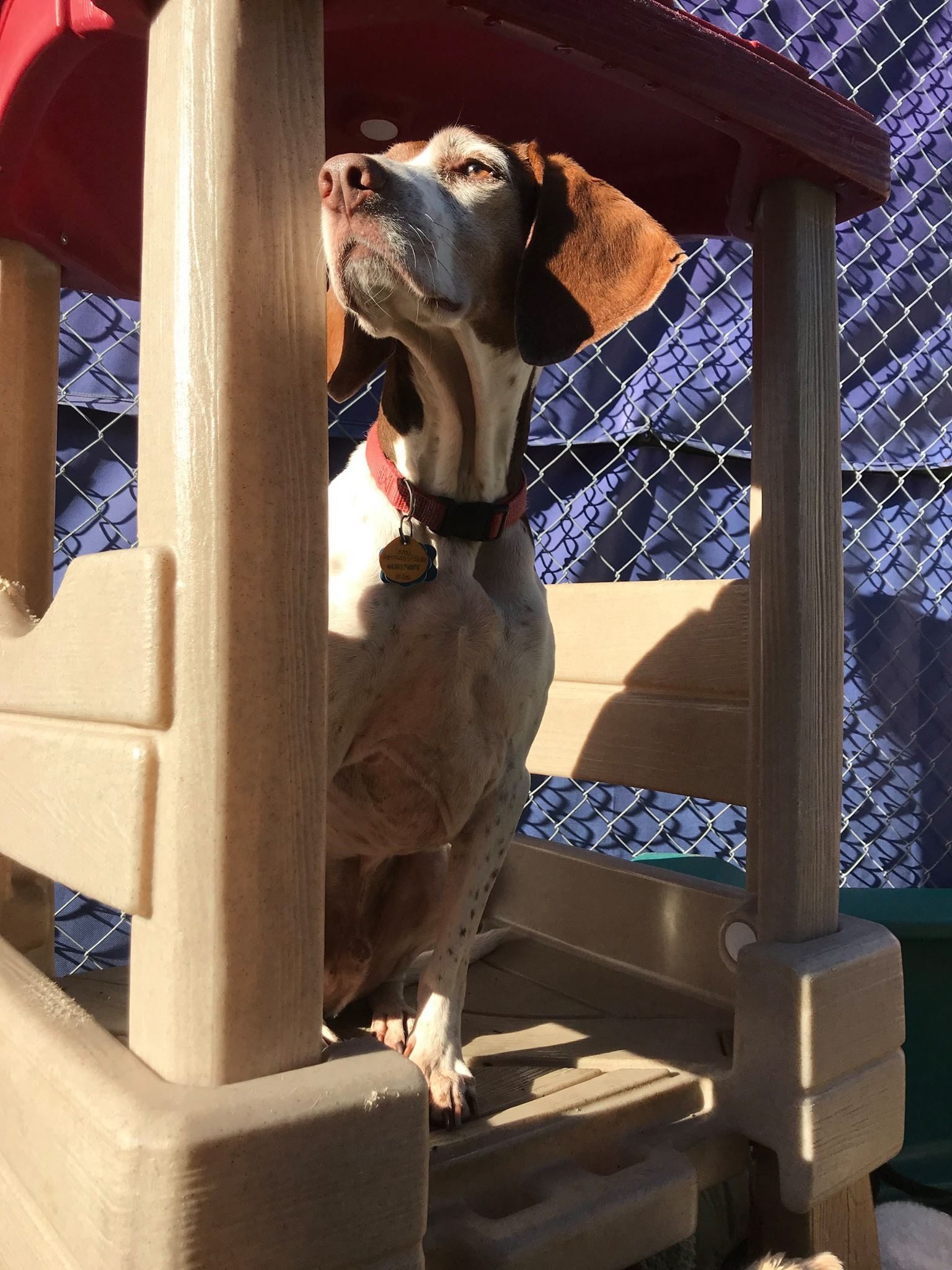 Our sweet Elgar is such a sophisticated gentleman. He comes to see us each week, human siblings in tow, and waits patiently while his family leaves him at school. Once he sees them safely get in the car, he is free to start his day! While not a wrestler or social butterfly, Elgar is our sweet cuddle monster. He RUNS out to playgroup to assume his position atop the play equipment, and spends his day snuggling up to our CBA team and any other pup looking for a cuddle buddy. We cannot think of a more deserving pup for the March honor! Congratulations, Elgar! We love you!!