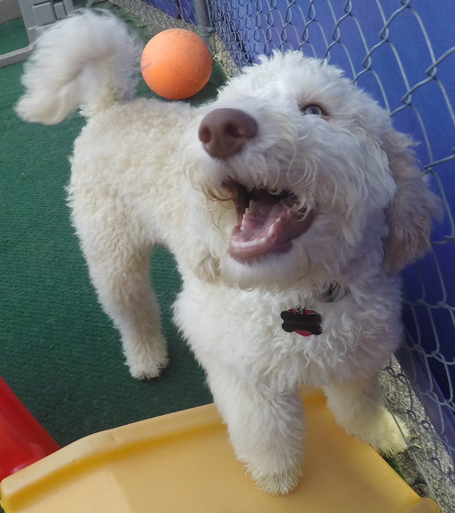 Prince Louis (pronounced like the King) is our little bundle of cuddles. Louis comes in each day and gives hugs to all the staff, before running out to play with all his friends – and he has MANY! Louis does not discriminate. Pups large, small, boy, girl, shy, boisterous… Louis is your best friend! He is just as sweet as can be and we are lucky that he chooses to spend his days with us! Congratulations, Louis! We love you!!