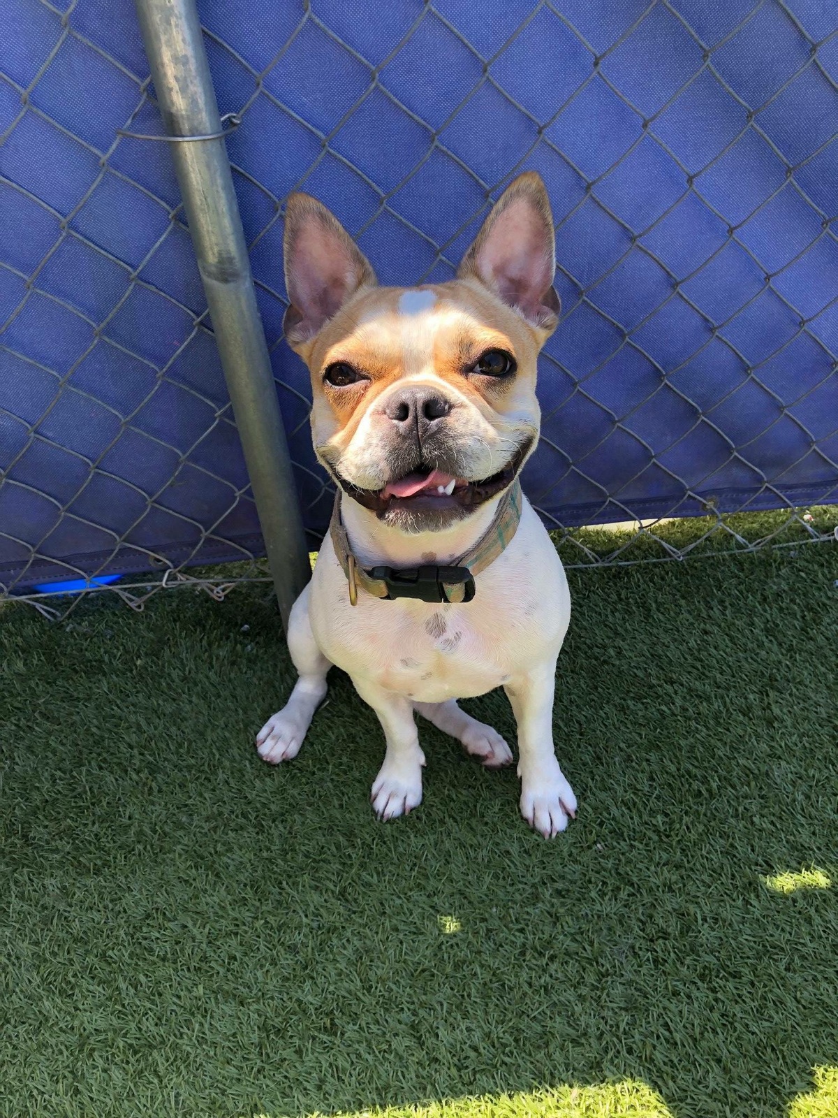 Tobin, our tall supermodel Frenchie, lights up our day when she comes running into day care. This social butterfly has never met a pup she doesn’t LOVE, and is our resident Miss Congeniality to all new pups. She’s so sweet and gentle with her playing, bringing even the most shy dog right out of their shell. 🙂 We simply love that Tobin (and her sweet Mama) chooses to come spend her days with us! Congratulations, Tobin! We love you!!