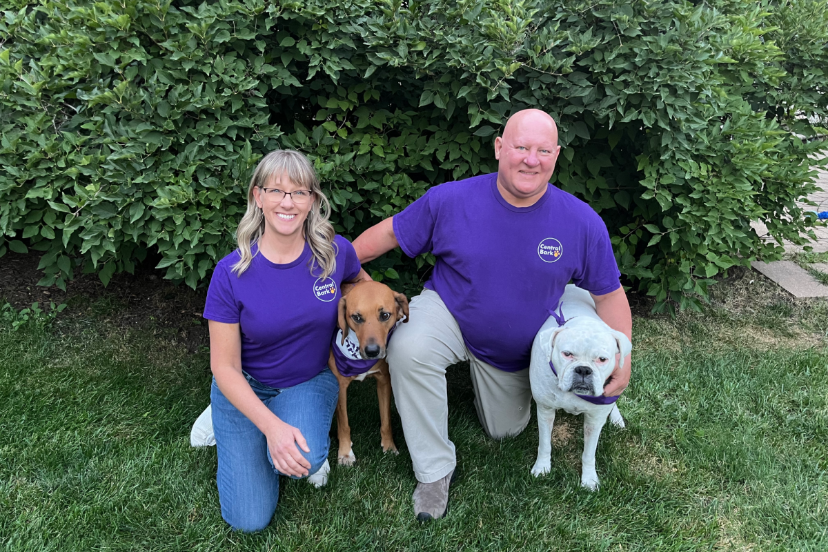 Hi, we’re Mike and Beth Carter, proud owners of Central Bark Aurora-Fox Valley, the best dog day care and boarding facility in the Aurora-Naperville area! We’ve lived in Naperville since 2000, raising our three kids (who are now grown) and filling our home with dogs every step of the way. Today, our family includes Lily, a lab-hound mix with a nose that gets her into trouble, and Ellie, our sweet but goofy white boxer.