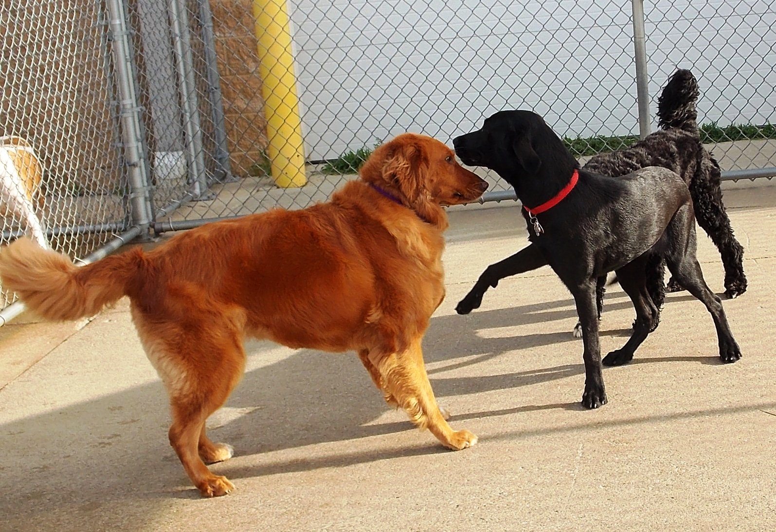 Our Maggie Mae is a high energy “red” Golden Retriever and her life is almost perfect. She lives with Rebecca, who dearly loves Maggie. Rebecca spoils her with love, treats, and lots of time together in “Porchville” (Rebecca’s word). Rebecca exercises Maggie as much as a working mother can, and Rebecca works long hours. She even arranges play dates with her neighbor’s dog, Sasha. Sasha is a big, gentle Rottweiler who is also one of our daycare friends, and a previous Dog of the Month.