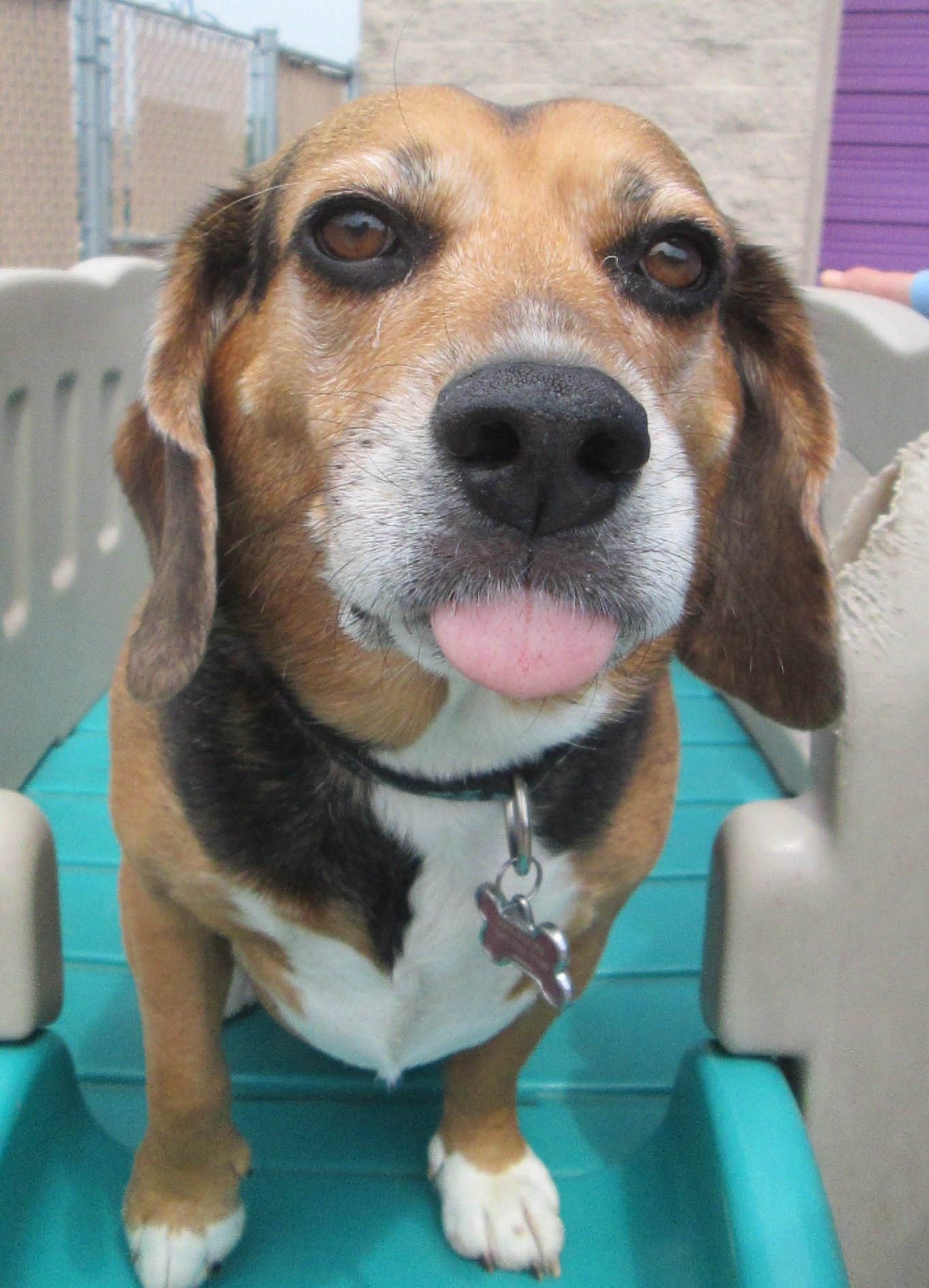 Meet Jazz (aka Jazz Hands). Jazz is a six year old beagle mix and has been coming in for play days since April 2008. That’s five whole years that we’ve had the privilege of spending with this gal. Once again, the handlers came up with a lot of fun facts about Jazz, so let’s dive right in: – Jazz spends Sunday mornings completing the New York Times crossword puzzle while she drinks English Tea. – She’s the neighbor who always delivers a plate of baked goods to those who move into her neighborhood. – If she misses her “Jazzercise” class, she can always revert back to her Richard Simmons Sweating to the Oldies VHS tapes. – She’s always on the lookout for gently used leg warmers on eBay. – Jazz loves to go antiquing and frequents garage sales and yard sales. – Her bedroom walls are covered in Donny Osmond posters, most of them are from the theatrical production of “Joseph and the Amazing Technicolor Dreamcoat.” – She still has all her Air Supply cassette tapes. However, when she’s power walking through Gurnee Mills she prefers to listen to Beyonce on her Sony Walkman. – Her favorite movies are on the Lifetime Channel. – Her favorite shows include Hawaii 5-0, Murder She Wrote and Seventh Heaven. – Jazz refuses to sell her Beanie Baby collection. – Jazz recently signed up at CLC to learn Japanese. Congratulations pretty girl! It’s been a real treat spending the past five years with you. We are honored to crown you Miss June 2013!