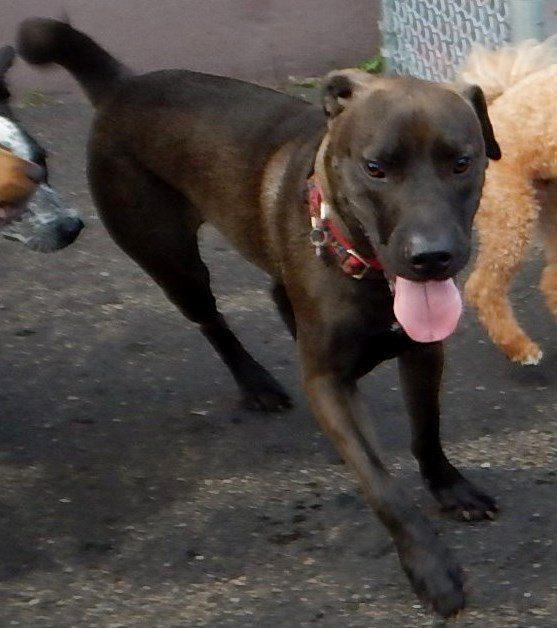 Cuddles, an almost 2 year old sharpei-lab mix is January’s Dog of the Month! Cuddles has been with the Bark since August of 2014. When Cuddles first started coming to the Bark, she was extremely rambunctious, jumping on everyone, 2-legged and 4-legged! However, after training classes at the Bark with our own Jessica Ingalls, Cuddles is much better behaved. Although she no longer jumps on everyone, her energy remains boundless and she still loves to jump; she looks like she’s on a pogo stick every day. Cuddles loves to carry around a tennis ball but she’s good at sharing and will even let her friends take the ball right out of her mouth. Cuddles especially loves playing with Beau, Bo and Giles. We love Cuddles’ unstoppable energy and we are glad the Bark is her outlet of choice. Oh and did we mention that she is a Cubs Fan…what more could you want? Congratulations Cuddles!