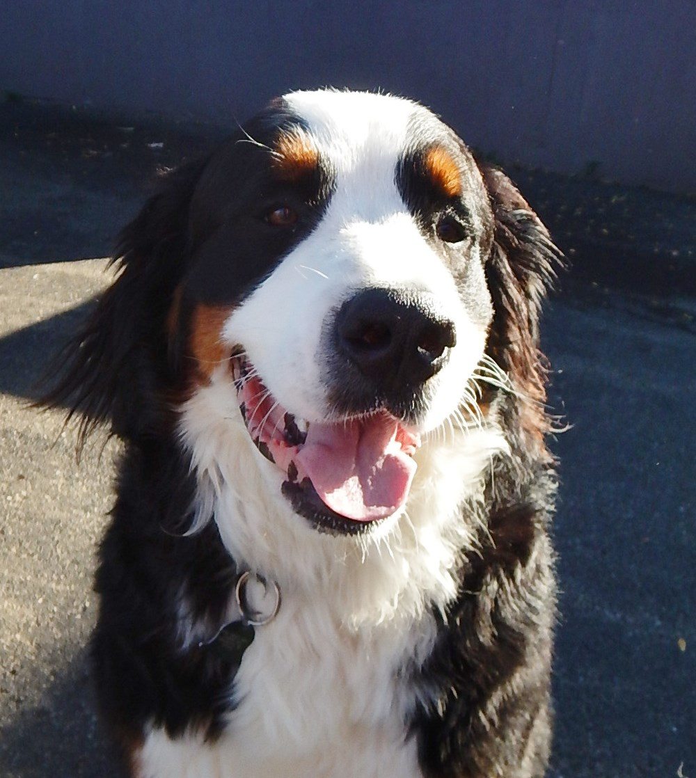 Giles is an almost 2 year old Bernese Mountain Dog that has been coming to the Bark since April of 2014. He is our class clown and we have to honor him because he’s just so darn handsome. Seriously, though, Giles is a great dog. He has been through training with us and has earned his CGC certificate. We call him “King Giles” because when he arrives in the morning he descends down a ramp from the van, then walks with dignity into the Bark. Giles is no snob, though. He loves to play with everybody and barks at all his friends to invite them to play with him. However, most of the other dogs don’t like to be barked at so they ignore him at first. Giles is smart, though, and he quickly switches gears and drops into a play bow to entice his friends to play, and that gets them every time. Maggie, Arlo, and Bo are some of his best buddies. Giles is goofy, but so loveable and we love having him at the Bark. Congratulations Giles!