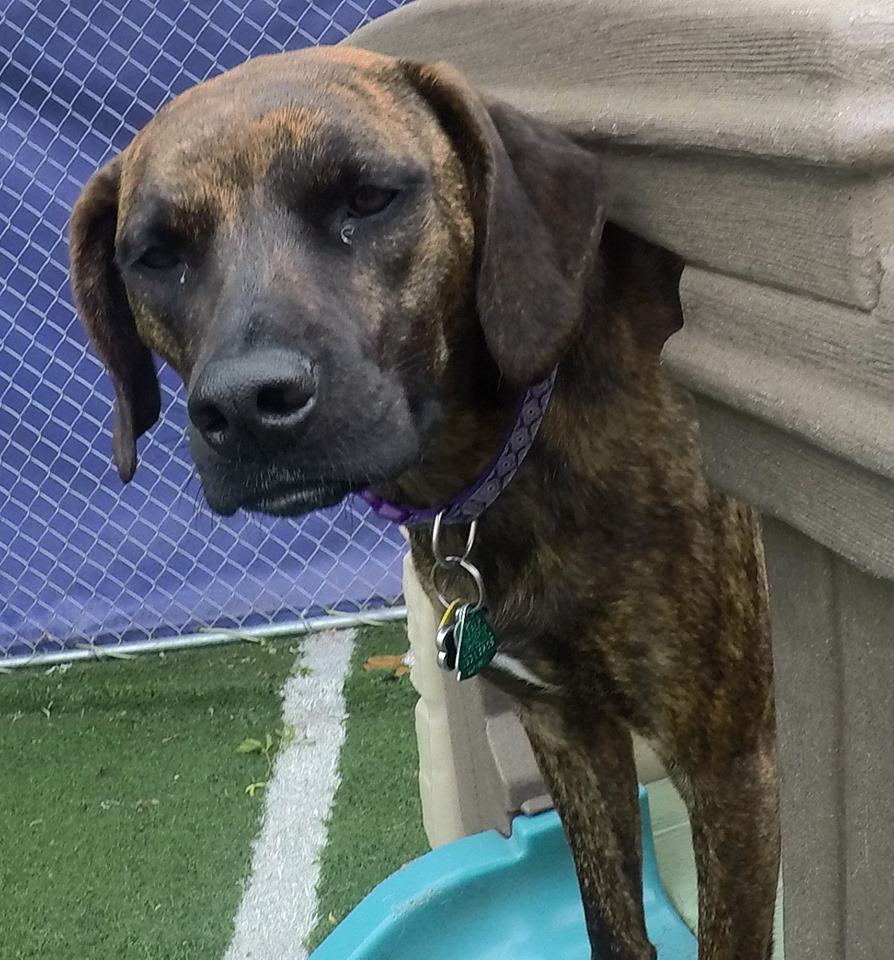 Llewellyn is a 1 1/2 year old Mountain Cur who has been coming to Central Bark since August of 2018. Llew is a sweet, happy-go-lucky girl who is always ready for fun or mischief! She comes bounding out of the crate room, prancing and ready for action. Llew is tireless and loves to play chase with any dog that’s interested. Llew’s best Bark Buddies are Kiko, Moose and Penny. Llew is also well-behaved in her crate and she has excellent gate manners. Polite, fun and smart, Llewellyn is the total package.Congratulations Llew!