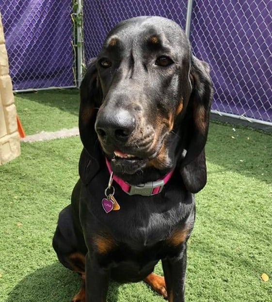 Luna is a 2-year-old Black and Tan Coonhound who has been coming to the Bark since January of 2017. Luna is extremely sweet-natured and although she is still young, she is very motherly and nurturing. Luna takes all the new puppies under her wing, or more accurately her ear, and makes them feel welcome. She is one of our best ambassadors. Luna also watches over her dachshund brothers, even though they are the older ones. Luna is a great guard dog; with her classic, loud hound bark she never fails to alert us when the garbage truck or Fed Ex truck is nearby. Luna loves to play with anyone who plays nicely like she does; her best friends are Penny, Gregor and Emmett. It’s impossible not to love this super sweet girl.Congratulations Luna!