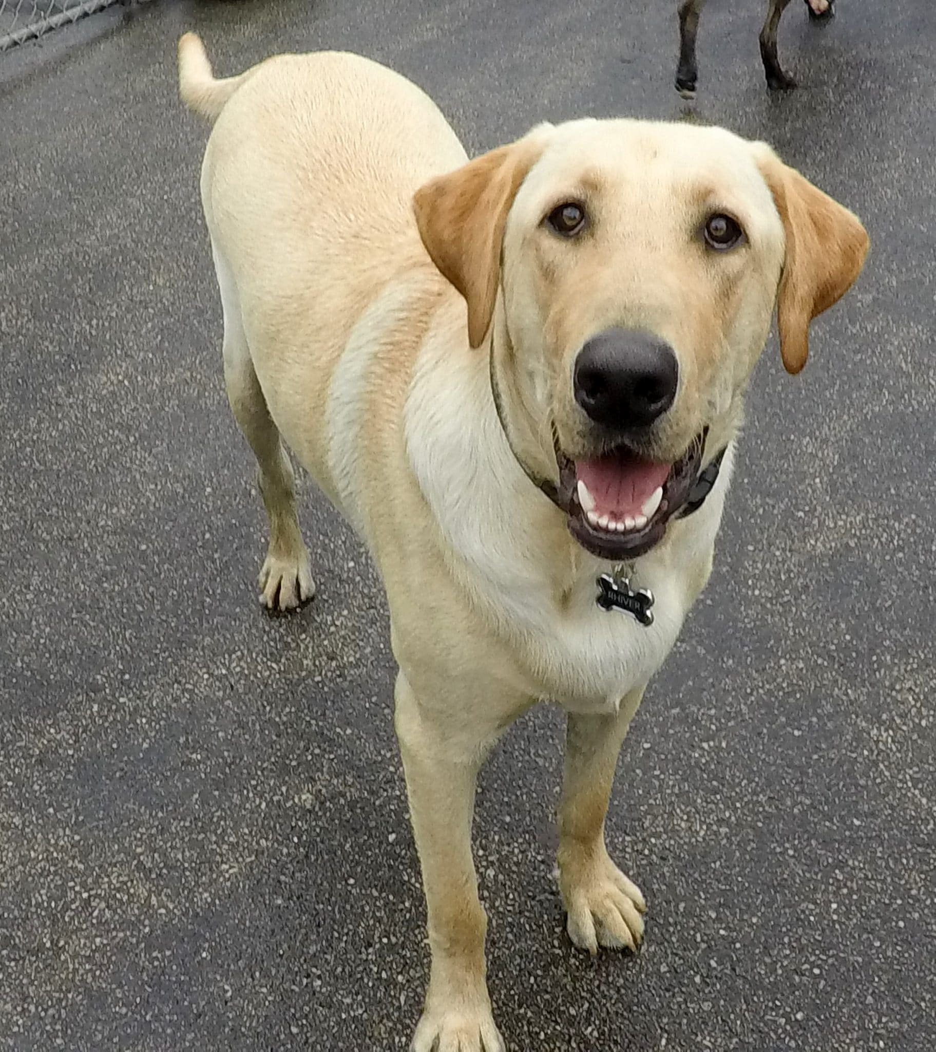 Rhiver is a one year old Yellow Lab who has been coming to the Bark since January of this year. Rhiver is one of our sweetest and friendliest pups. He has been described by staff as “goofy, playful and outgoing.” He loves absolutely everyone and, like most labs, playing fetch is one of his favorite games; he especially enjoys it when he has a toy and other dogs are chasing him around. Rhiver loves everyone but his BFFs are Bebe, Krueger and AJ. Although Rhiver is over a year old he seems to still be growing every time he comes in. That’s ok, though, it just means more Rhiver for us to love. Congratulations Rhiver!