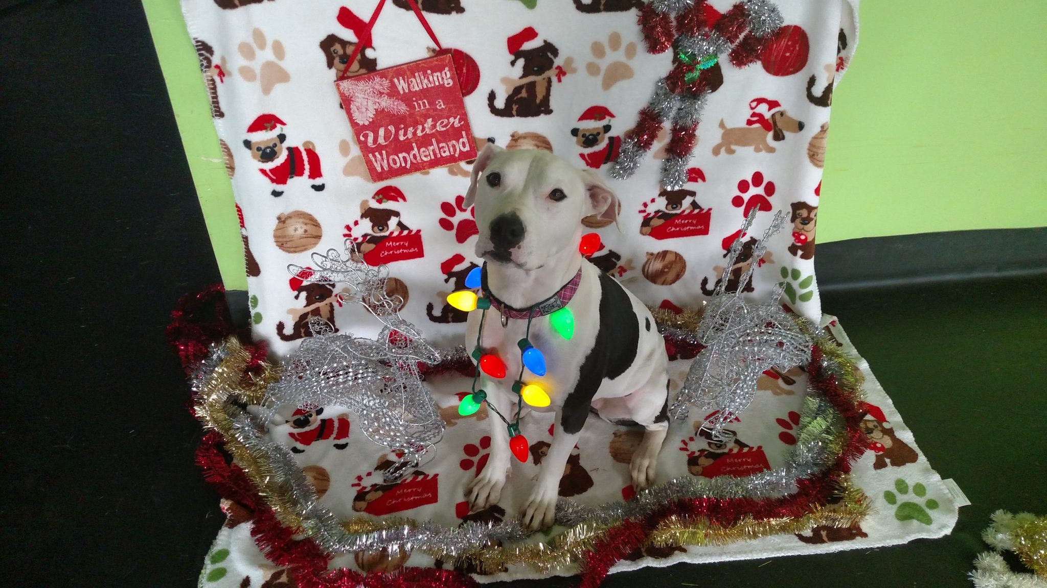 Dasher, Dancer, Prancer, Vixen, Comet, Cupid, Donner, & Moo…wait Moo? Moo may not be one of Santa’s reindeers but she sure has been a good girl this year! Moopotamus is a 4-year-old Amstaff/Boxer/Bull Mastiff Mix, and is also one of our lovely VIP’s who attends day care Monday-Friday. Every morning she always puts a smile on our faces when she walks through the door. Moo loves everything at day care whether it’s playing with toys, swimming in the pools, or jumping into snow piles. We would have to say Moo’s besties are Pebbles, Otis, and Benelli. She can’t get enough play time with them. When her parents are away Moo gets to stay with us; we are her home away from home. <3 We love our Moo Moo and her awesome parents Stephanie & Dan! Congrats on being Miss December 2016. It’s your time to shine, you deserve it and so much more! 🙂