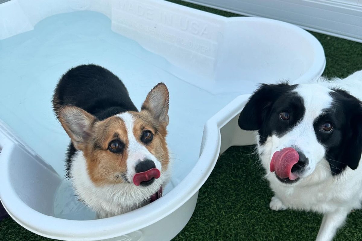 Lastly, I want to talk about the play groups. Flick has gone through at least 2 groups over the last few years. When he was younger, he was always playing so hard that he would come home tired for 2+ days after. Over the last year or so, that has evolved. He’s an Australian Cattle Dog and has definitely grown into the “herding/supervising” role that the breed is known for. He might even look a little grouchy. I believe he now spends his days with the puppies or the older crowd, keeping his eye on them. He’s more into panhandling for his treats and getting some pets than he is into playing these days. He’ll hang out with the other dogs a bit for a photo op, but you’ll probably catch him on a bed in the sun!!