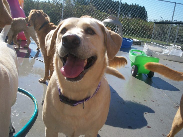 Say hello to Packer, our May Dog of the Month!! This beautiful 4 year old black German shepherd has been on the daycare scene since he was 10 months old! Like so many of his friends here, Packer LOVES the water. He can usually be found splashing loudly in the pool or surprising us by sticking his face in the stream of the hoses! Once this happens, it’s as if he just can’t contain his composure anymore and he starts zooming around getting all his pals just as excited as he is! Packer, like your typical 4 year old boy at school, shows his love to his girlfriends (and the people) by getting their attention with his sassy shepherd antics. If he isn’t busy flirting with the ladies or playing with water, Packer can be seen taking a “break” on the sidelines. But don’t be fooled! A shepherd’s job is never done! He takes this time to watch over his friends, making sure that they are behaving for us. Otherwise he has no problem becoming the sheriff and directing them to take a break. And if all else fails, Packer is perfectly happy getting lots of love from all of the staff, which we are more than willing to give to his adorable face!
