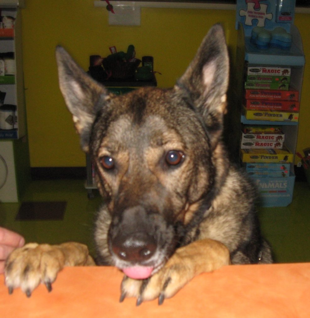 You’re all grown up now. Sabina came to us before her ears perked, she was a tiny little fuzzball curious about the world. And now that she turned 5 years old last month, she’s a very large fuzzball curious about the world. By far, one of the smartest dogs we have had come through here, she likes to invite her friends in her curiosity. And manners!! She will be the first one to open the door for you. A great way to polish the skills of our Staff. Everyday is a field trip in Sabina’s world. (Seen here at our service counter, assisting other clients).