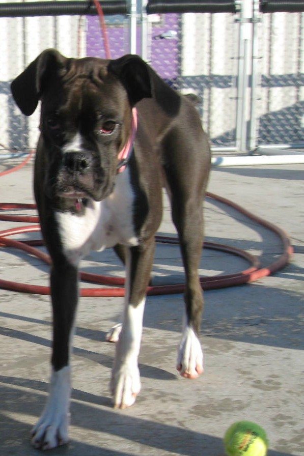 Our Siren female Boxer is always the life of the party. She has a unique way to keep play activities going on the yard all day long. Plenty of stamina in this little mermaid. Whether it is Big Ball, Tennis, or just plain old romping around, Selkie is ready, willing, and able. Her frequent visits delight our guests as well as our entire Staff. Selkie’s family take her playtime seriously-she often comes during weekends and holidays for day play, just to keep our overnighters entertained!