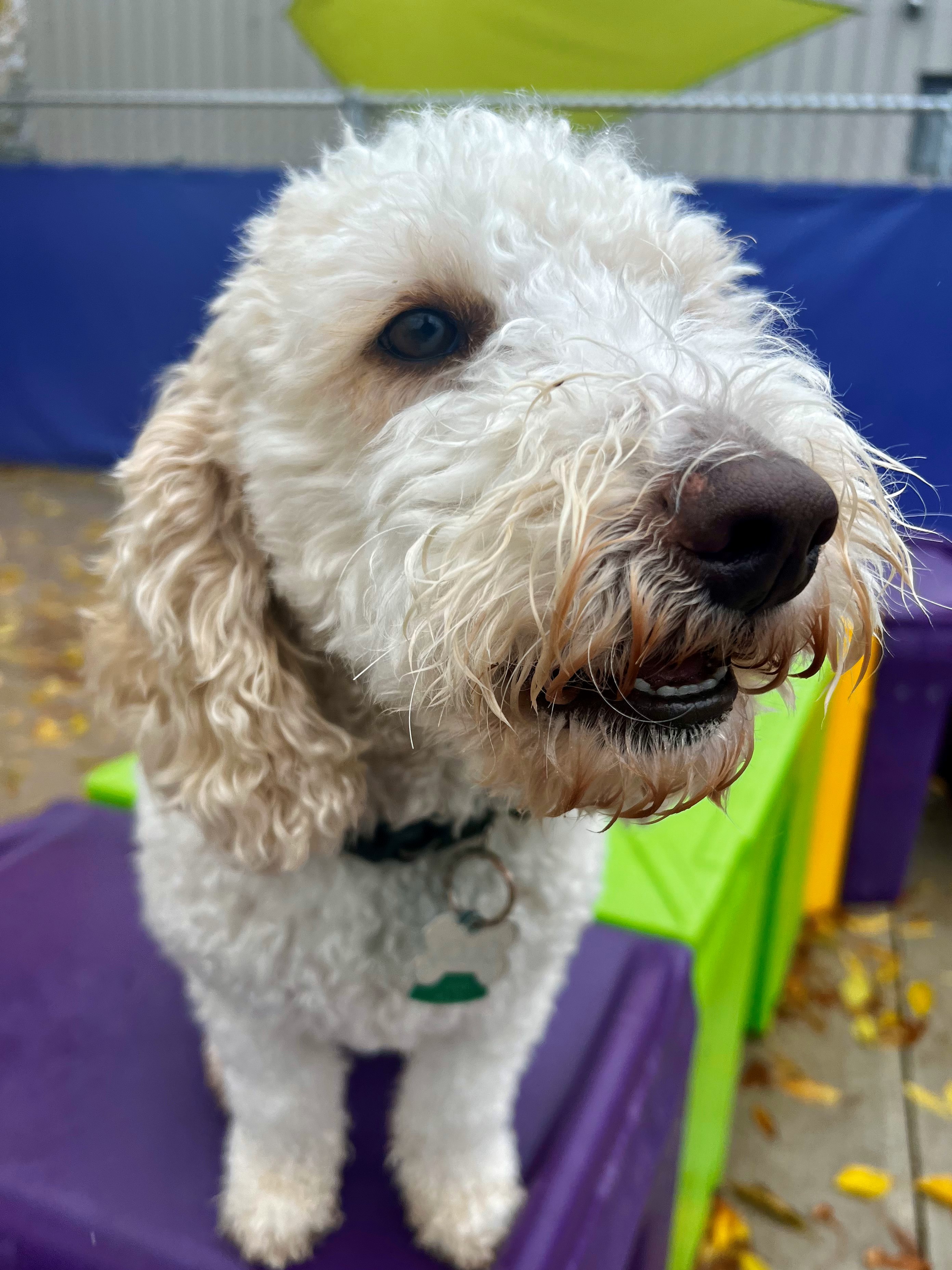 This month’s winner is Jojo! He is a very handsome and sweet golden doodle who is very well known for being the cuddle master of daycare! Every day that he is here he makes sure it’s a zoomie mania party in his group, getting all of his buddies to chase after him! We have loved having this amazing kiddo here and cannot wait for many more years of fun with him!