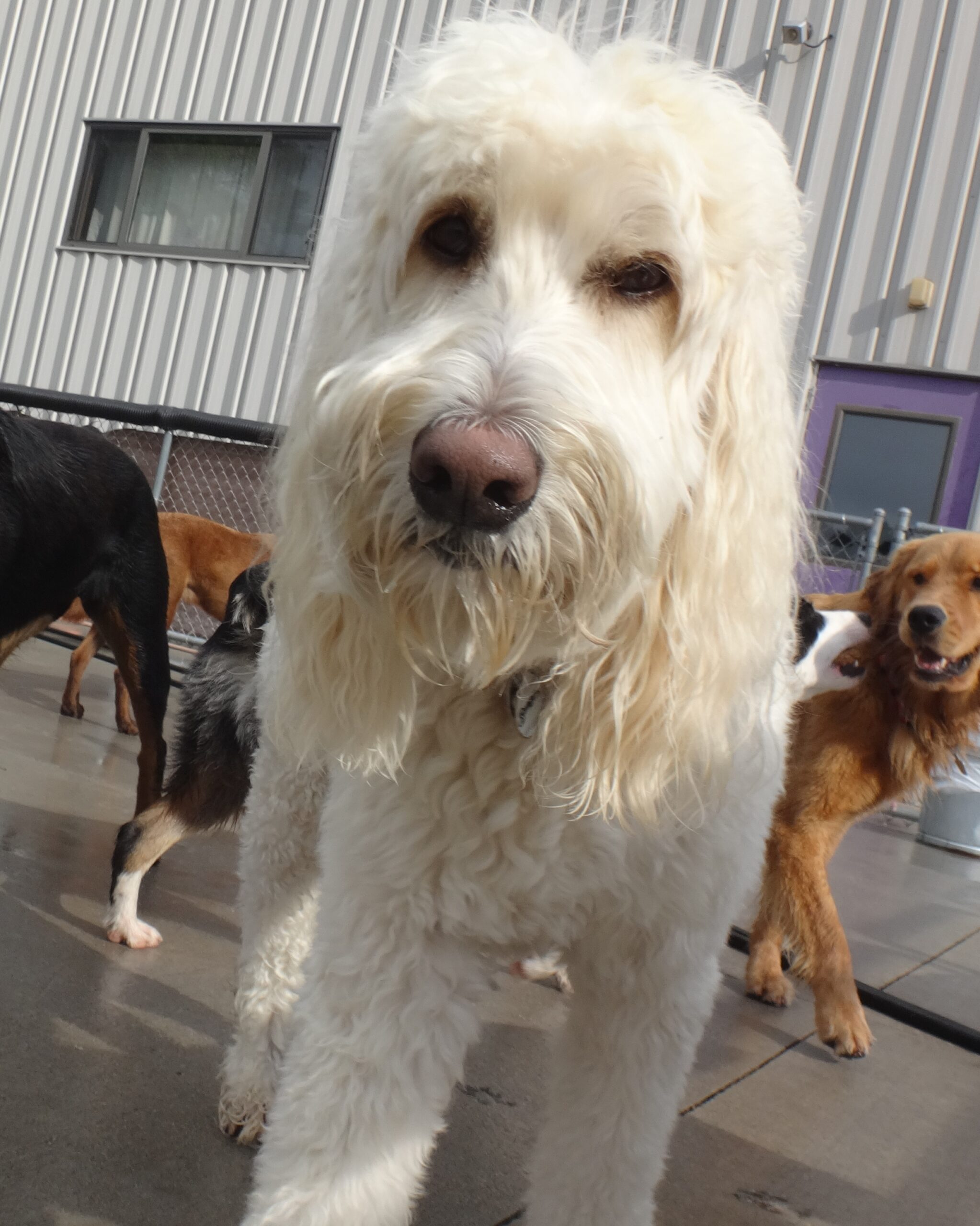 This handsome man is Oscar! We think Oscar is the perfect dog to bring to school since he loves to teach all our young puppies their manners. Oscar is a great teacher, and he is always willing to learn something new and is always working on his training skills. With all of his hard work, Oscar has passed our beginners class and is about to move onto the advanced class! While Oscar is out on the play ground, you can find him flirting with the ladies. All the girls swoon when Oscar breaks out the smolder. If he’s not sweet talking the ladies, you can find him wrestling and playing tag with his BFF, or lounging in the warm sun. Congrats on being September Dog of the Month Oscar!