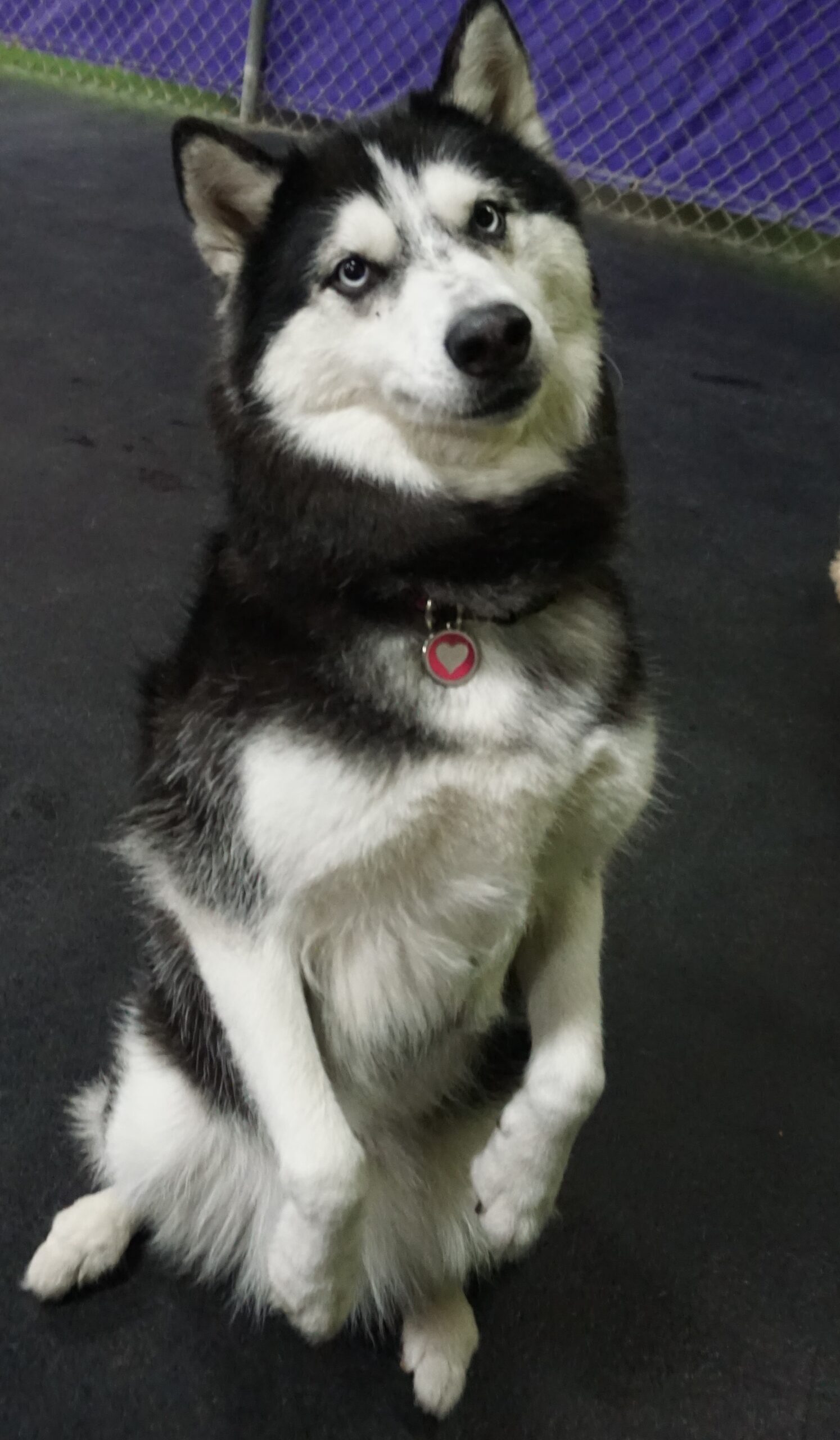 Oh, the weather outside is frightful, but Ms. Abbey finds it so delightful! And because she just loves it so, let it snow, let is snow, let it snow! Ms. Abbey sure does enjoy winter, so it is absolutely perfect that she is our December dog of the month. Abbey is a seven year old Siberian husky with expressive blue eyes and a ready singing voice. Every visit she comes in with a happy trot, a welcome howl, and is ready to start her daycare day with us. As soon as she gets to group she is excited to catch up with her pals Dasher and Dancer . . . oops I mean Wrigley, Cleo, Rocky, and Benji. Ms. Abbey is very spirited and never minds sharing her opinions with her fellow furry friends in a friendly debate, and boy do her friends hang on her every word . She along with her parents Janet and Paul have been with us for around six years now and each year is more fun-filled than the last. This holiday season we are thankful for Abbey and to her parents for sharing her with us each week. Happy Holidays and enjoy your month of being our shining star!