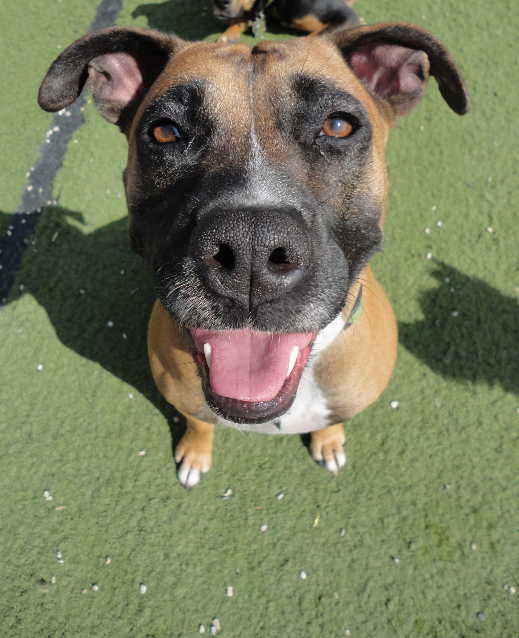 Meet Emma, a fun loving two year old boxer mix. She has been coming to daycare for a little over a year now & she has loved every second of it! Emma pulls her parents through the door ready to get to all of the action each day. It takes every ounce of her to sit & wait patiently for the next available handler to do her flea check. After that order of business is done, she pounces at each door. They just don’t open fast enough for her! Everyone knows when Emma has arrived by they way she enters playgroup. She bursts through the gate & immediately picks up one of her favorite goughnut stick toys & offers to play a good game of tug with the first dog she runs into. Some of her BFF’s are Luke F, Maddie T, & Willy. We love her busy bee of a personality & how she loves to keep the energy flowing. Day care wouldn’t be the same without her! We are so glad to have her as part of the pack & look forward to many more years with her! Enjo y your month in the spotlight Emma, we love you!