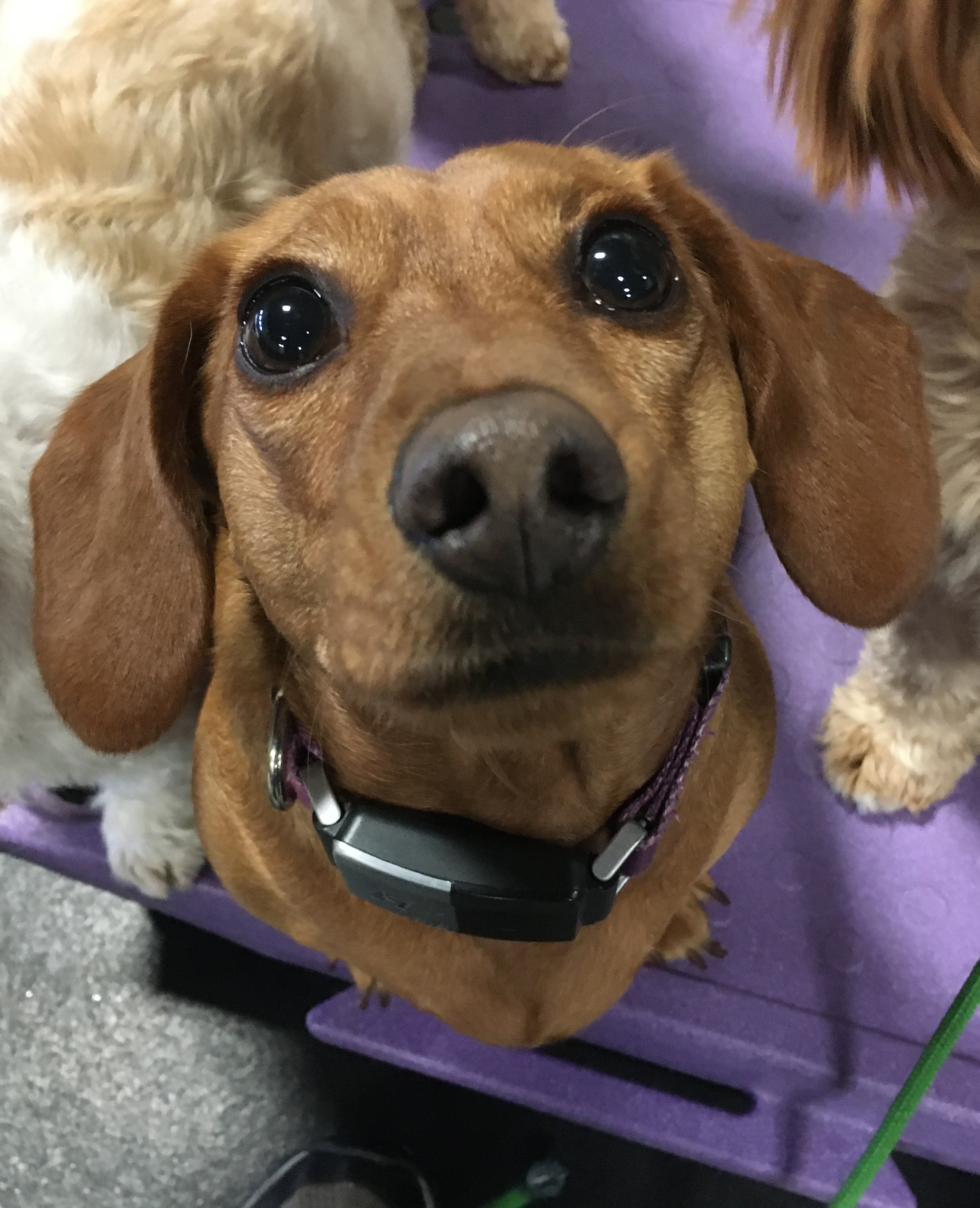 They say, “Silence is golden, unless you have a Dachshund then, silence is suspicious.” Well, Ms. Frankie Furter, it definitely not the silent type! She is outgoing and proud! As are we to announce that this sweet, fun-loving Dachshund is our February Dog of the Month. This little lady packs a whole lot of personality into her little body and she loves to share it all with her friends here at Central Bark! She enters her playgroup with a perky prance and is immediately ready to start the party. Whether it’s getting a group together for some hide n seek, casual chats on the kilmbs, starting a doggy chorus, or showing everyone how it’s done while working on group play skills, Frankie is sure to be involved. Some of Frankie’s favorite pals include Lily J., Jameson, Hazel, and Josh, just to name a few. Frankie also enjoys a little One-on-One Enrichment time in the form of a Canine Fitness and Agility session. This lady can zip, zoom, and jump with the best of them, but she really thrives on showing off her amazing skills on our Fit Paws equipment, while working with her enrichment specialist. We truly appreciate this playful gal and her family, who have been with us since she was a young pup of only a few months. Thank you for being so awesome, Frankie! This month is all yours!