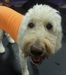 Help us congratulate Mr. Fluffers, aka Jake S. on being our January Dog of the Month! Way to start off 2018 big guy! Jake has been a star pupil here at Central Bark Mequon for over nine years now! He is a beautiful white Goldendoodle that is nine, going on ten, years young. Jake is just as sweet and energetic as he was nine years ago! The one thing that EVERYONE knows about Jake is that he thrives on love from his human friends and family. Every dog seeks love and affection, but that is an understatement for Jake. He needs to be SHOWERED with love, which works out well because that staff here at Central Bark Mequon enjoys spoiling him to pieces! Speaking of being spoiled, Jake has a lovely family that knows the level of attention and pampering that Jake prefers. During these chilly winter months his family is sure to send him to daycare in a warm sweater that he likes strut his stuff in when around his friends. And of course it is orange, which is his favorite color!! Being well groomed is also very important to Jake. To feel good, you have to look good! Every six weeks Jakes gets a spa day with our groomer, Amanda. He sure does appreciate it when she blows out his fluff on his poodle head so it stands tall and is soft to pet! (This is how he got his nickname of Mr. Fluffers!) Speaking of grooming…His human siblings like to ensure he is festive with the holidays, which has included a little bit hair dye. Other times that Jake likes to be pampered are when he has a sleepover here at Central Bark. His family is sure to send a blanket, his favorite referee toy, and giant cookies. Jake would prefer that his mom sends a loaf of bread as a treat instead, but it would make his friends quite jealous! It has been astounding watching Jake grow up, and learn from his fellow pack mates. Nowadays, he has gone from being taught to being the teacher. New pups sure do adore frolicking with this animated man, and he enjoys giving them a run for their money. Some of Jakes’ favorite furry friends include Monty, Rocky V. and fellow doodle pals Goldie, Lily, and Yanni. Jake truly is fun guy and our daycare program wouldn’t be as lively without him. We appreciate that Jakes family has shared their favorite pup with us on a weekly basis for so many years. And, thank you Jake for being such a wonderful boy! Enjoy your month in the spotlight!
