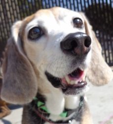 Let’s hear it for Jessie, our March dog of the month! Jessie is a spunky thirteen year old Beagle, with a charming howl, sweet gray face, and a heart of gold. Jessie, along with her sister Katie, have been a part of our program for nearly four years. Being that she has been with us for some time now, she has accumulated a plethora of friends, including but not limited to, Kobe, McGee, Molly S., and Lucy L. While she may be older in age, she still has plenty of pep in her step and will occasionally give the youngster’s a run for their money. When she is not showing up the young pups, she enjoys mingling/gossiping with her pals, howling out some tunes, and getting ear rubs from the staff. She certainly is a sweet old soul, who only gets sweeter as her face gets greyer. We are so happy that this wonderful girl is a part of the Mequon pack! Congratulations Ms. Jessie, the spotlight is on you this month!