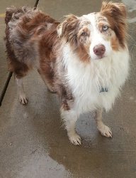 This May as the sun shines bright it is only fitting that our dog of the month’s personality matches that brightness. So it is our pleasure to announce that Lasso is that amazing boy! Lasso is a five year old Australian Shepherd with a ready smile, intelligent eyes, and can do attitude. He and his dad Bob have been with us here for almost all of Lasso’s five years. Watching this guy grow up has truly been a sight to behold. He’s gone from being the eager young pupil to the teacher of the young pups. He is excellent at showing young kiddos the ropes and really helps them settle in our program. Lasso loves playing with all the nifty toys we have such as our brightly colored Jolly balls and Goughnuts. Some of the friends he likes to share his toys and play with include Dempsey, Alice, Bailey U., & Lily C. When he’s taking some down time during lunch his dad always makes sure to send him special treats, which includes anything from zucchini to green beans or even carrots; and Lasso gobbles them right up. Bob has also recently started adding on Enrichment sessions for Mr. Lasso during his visits with us and we must say he totally rocks at them! Bob, appreciate you allowing us to spend time with Lasso two times each week for so many years. He is, simply put, the best, and we couldn’t imagine our program without him. Thanks for all the snuggles and hugs Lasso! Enjoy your month to shine like the star you are!