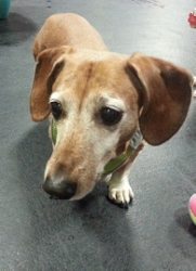 Please give a round of applause to our April Dog of the Month, Morton! Mr. Morton is an eleven year old Dachshund, with a little body just bursting with personality. Don’t let his age fool you, he still has plenty of pep in his step, and enjoys getting the young whippersnapper’s into shape. When he is feeling adventurous he likes to sit on the slide and bark until you help him work his way to the top. Once he is at the top he keeps a lookout and likes to let everyone know that he is top dog, literally. Morton likes to hang out with all kinds of friends however some of his favorites include Oliver G., Bella W., Guinness, and Lulu A., just to name a few. One of the things he really enjoys is sitting in our toy car with his girlfriend Bella. While in the car, he likes to poke his head out the back window, like he is expecting someone to come take him and his lady for a ride. When he isn’t being our little helper or trying for car rides, he enjoys walking around with the staff, and getting ear rubs. We sure do love to spoil Morton, and boy oh boy does he eat it up! One of the funny things about Morton is that when he is tired and relaxing in his kennel, he likes to burrow into his blanket until he can’t be seen. It is just too darn cute to see him wrapped up like a little burrito. We are so happy to have you guys in our program! Thanks Amy for sharing this wonderful guy with us every week. Congratulations Morton, it is your time to shine!