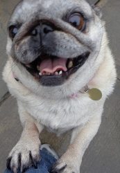 How could anyone deny that sweet pug face? We sure can’t, and that’s why we made Sweet Pea our November Dog of the Month! This nine year old pug scurries her way around our daycare three times a week and quite frankly, if it were up to us we’d have her every day! Sweet Pea has been attending daycare for six consecutive years! She started off coming with her big sis Olive. Olive & Sweet Pea were the dynamic duo here at CB Mequon, hence their names, but Olive sadly has passed away. Now that Sweet Pea is an only child, she is even more spoiled than before! Mom Deb packs her favorite Smiling Dog chicken treats and a comfy cozy blanket to nuzzle up on over naptime each visit. Although, Sweet Pea sometimes secretly snags her treats from her daycare bag during the car ride to school! Mom is also sure to get Sweet Pea in for her spa appointments on a regular basis & dresses her up so she is fashionable with her colorful harnesses & winter time sweaters! From her wiggly entrance into the building, as we all shout “SWEEEET PEEEEAA!” to watching her romp around with her favorite pals Gizmo, Daisy B, Champ, Cosmo, and Miles, it’s always go-time with the four legged fur ball! It’s so much fun to see her chase and play bow at her little friends because they all love her so much! Everyone loves you like crazy Sweet Pea, you deserve this! Congratulations Dog of the Month!