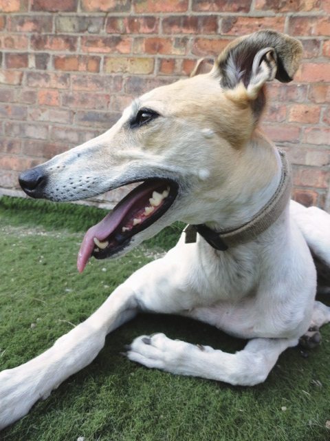 Meet Ashton, an amazingly beautiful and graceful Greyhound. Almost 4 years old, Ashton has the speed and agility of, well, a greyhound! “Retiring” age for many of these dogs can be anywhere between the ages of 2-5 years old and the breed has an average life span of 12-15 years. Some Greyhounds have even been clocked at up to 45mph-we think she might actually be a little faster than that 😉 She bolts out of her crate so quickly and takes off to the playground that we sometimes have to do a double take-was that Ashton or a speeding bullet?! The “race” doesn’t stop when she gets outside either. She sprints at full speed in wide, looping circles until she’s almost out of breath. Suddenly realizing that her buddies have joined her, she chooses her playmates for the day. Pablo, BB, Maddie, Dixie, Stella, Milo, Calvin, Shirley, Abby; she gives each dog some one on one time, unless Cleo is around. She is Ashton’s best friend . She loves nothing more than to run and wrestle with her until it’s time for her mid-morning nap. Yup, Ashton takes a little cat nap right in the middle of play time. Just long enough to regain some energy. Then it’s “off to the races” again. Her unique personality, sweet disposition and award winning smile have earned Ashton April’s spotlight for Dog of the Month-Congratulations Ashton!
