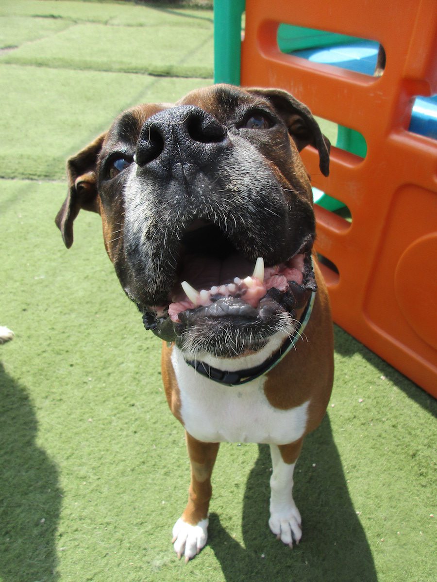 Drum roll please…and the winner of Central Bark Downtown’s July Dog of the Month is-DUKE! This 6 year old Boxer has been a staff favorite since the day he started. One look into those big brown eyes and you cannot help but be pulled in by them. His silly acrobatics around the yard just make him more lovable, as he jumps on and off the play equipment, in and out of the swimming pools, chases toys like the wind or barks to protect us from “intruders” outside the day care perimeter. We are lucky to have a dog like Duke and could not image what it would be like without him. Congratulations!