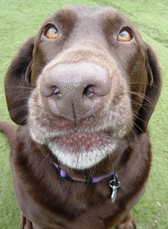 Somewhere between a smirk and a sneer is a smile that gives Billy Idol a run for his money. This is how Jemma greets us each morning she arrives. To the untrained eye, you may think that she is “one bad momma”, but we all know better than that. Jemma is sweet as brown sugar and would never hurt a fly. Now a squeak toy, that’s another story… Jemma began coming to Central Bark when she was just a rolly polly puppy back in 2008. We have watched her mature into the loving, loyal, well rounded dog she is today. An athletic swimmer, her bronzed fur glinting in the sunlight, she loves the summertime when the pools come out. After a dip in the cool, refreshing water, she stretches out to soak up some of the sun’s ray. Wintertime is a different story-a good roll in the snow revives and refreshes Jemma’a spirits and puts her in a playful mood. Laska, Hunter and Bentley can all be seen in her company on any given day. If you really want to see Jemma shine, though, just bring out a toy. She never gets tired of chasing anything you throw for her. She’ll even sit politely until you launch it. Jemma is just an all-around great dog and we couldn’t image day care without her. Thank you, Jemma for being one of the sweetest, silliest and snuggliest Chocolate Labs around!