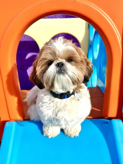 Meet Spaten! This little girl with the big smile is sweet as pie! She is soon to be 13 years old, but you’d never know it with all the spunk she has. Miss Spaten is one of our daycare veterans as she has been attending for over 10 years! Every time she arrives, she greets our staff with a few good morning woofs. When it’s time to play you can find her with one of her many buddies that she has made throughout the years, from Max to Rockie and everyone in between. When it’s time to take a break from play, you can find her getting some love and pets from the handlers. This happy girl always has a smiling face that will make your day that much brighter. It’s been a long time coming and she definitely deserves the award for October Dog of the Month! Congrats, Spaten!