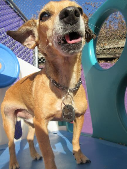 Meet Banksy, the tiny dog with the biggest, well, EVERYTHING! Banksy has a big attitude, a big spirit and best of all, a big heart when it comes to his day care friends, both 2 and 4 legged! Even though he just turned 10, Banksy has got the moves of 2 year old! Zipping this way & that way, engaging some of his usual buddies in a game of wrestling. You can always find him hanging with his best gal pal Maddie or his best bro Buddy. When it time for a rest, he hops up to the top of the play equipment and curls up for a power nap. Once refreshed, he’s off on another adventure. Congratulations to Banksy on being Central Bark Downtown’s January 2021 Dog of the Month!