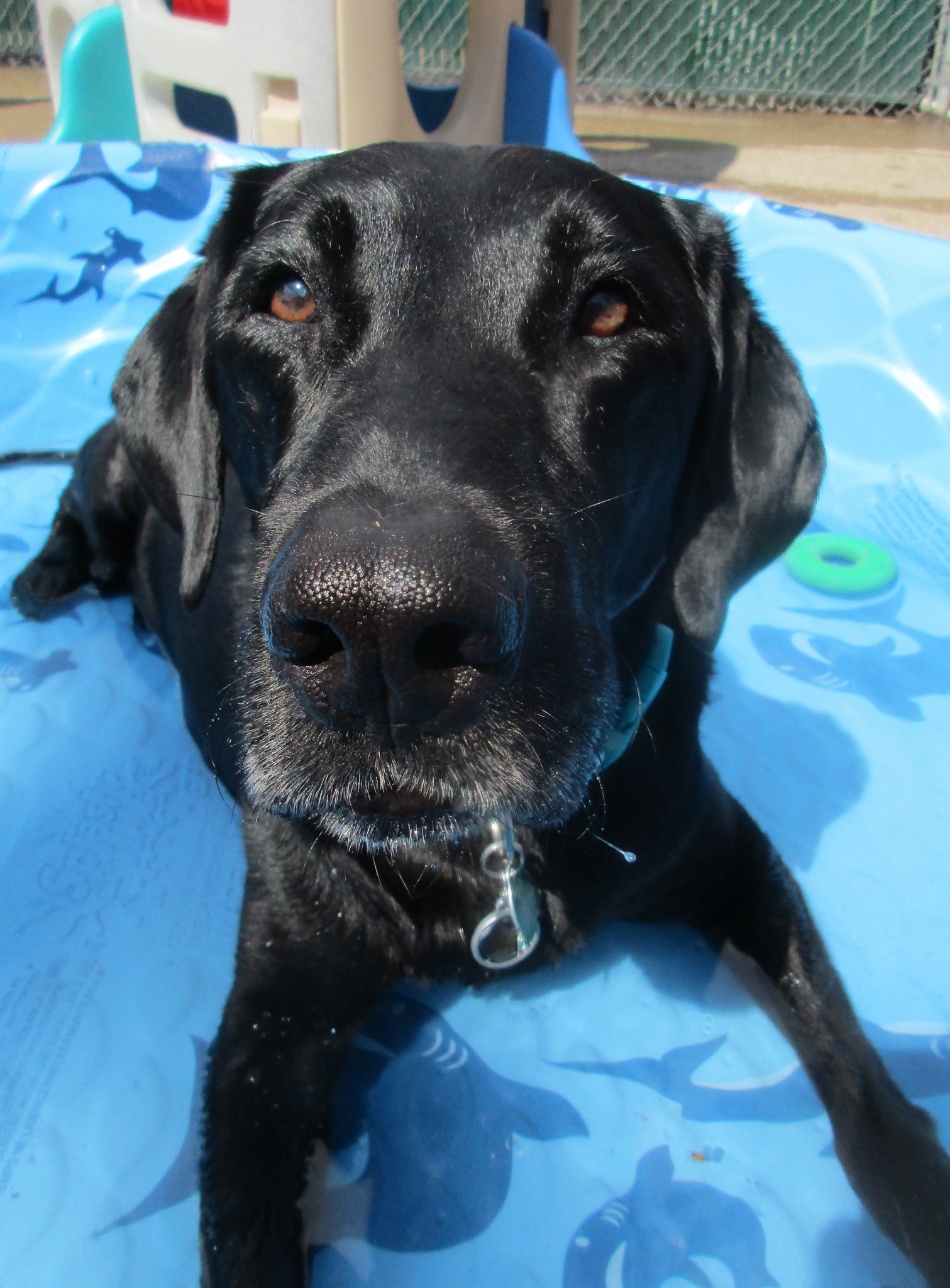 Meet the handsome Pudge! This 13 year old Black Lab is no stranger to the daycare routine as he has been at it for several years. He’s a calm, cool, and collected kind of guy who can hang out with all dogs from young to old. He’s a perfect gentleman and a great role model for all the youngsters in the play yard. You may find him taking a stroll around the playground or lounging in the sun, but his all-time favorite thing to do is lounge in the pools whether they are wet or dry. If Pudge had it his way, all year long would be pool season! No matter how much fun he has had throughout the day, he always makes sure to save one last burst of energy to run out to his parents at the end of the night. Recently, he has become a big brother to a little human and we know he will do great in his new role. With one look into those eyes, he will win you over with his sweetness. He has definitely earned the right to celebrate the September Dog of the Month award! Congrats, Pudge!