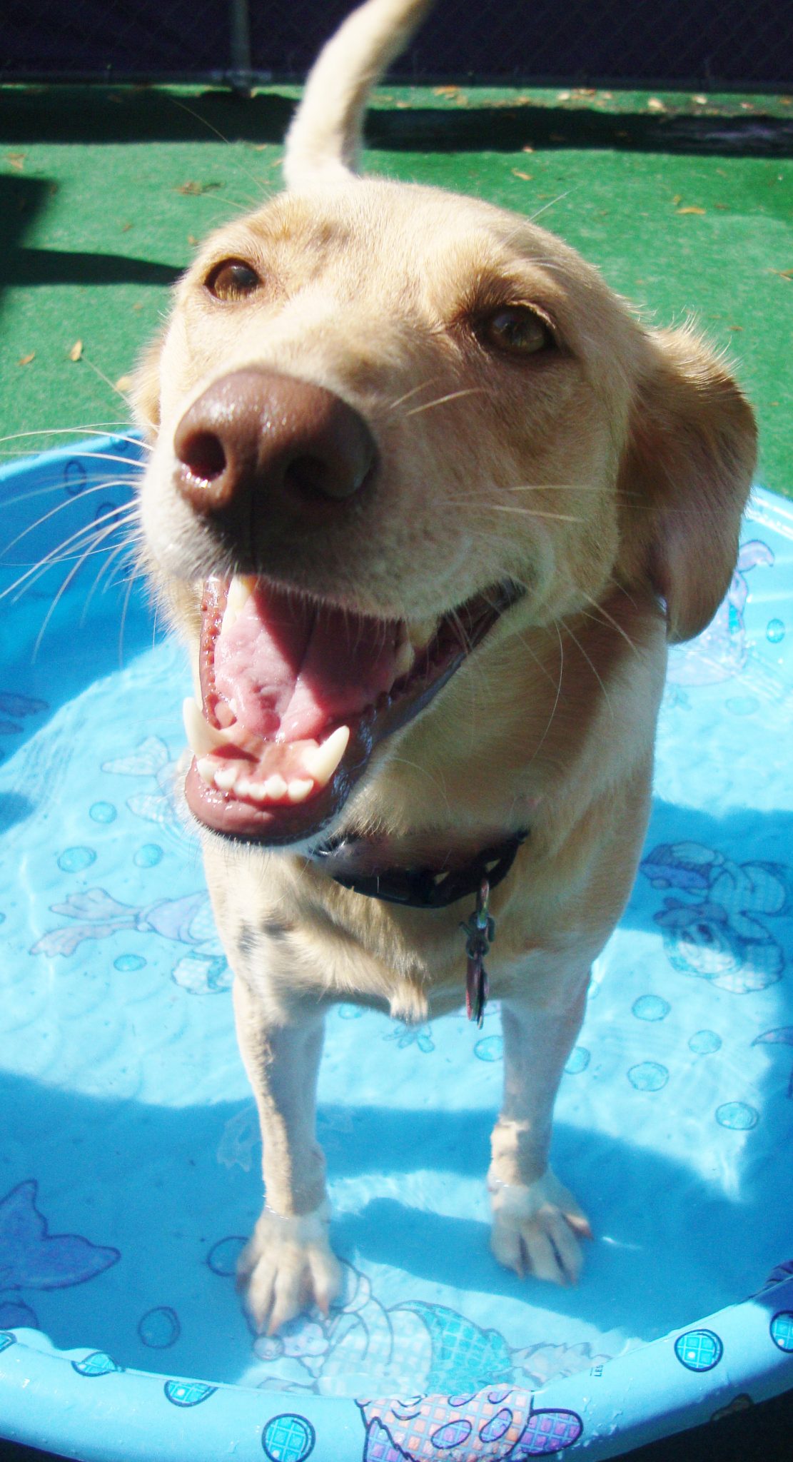 Join us in congratulating our September dog of the month, Calpurnia! This sweet lab mix has been coming to the Northside for a year now and boy has that year been a blast! Calpurnia is a dog of all trades. She loves doing anything from taking a dip in the pool, relaxing in the shade, getting lots of pets from the handlers, and playing with her best girl friends; Willa Rae, Maggie, Georgia, Bella, and Molly! Calpurnia is one wiggly gal! Her tail is wagging from the time she walks into the door all the way to when she walks out after a long day of playing. Let’s not forget her million dollar smile! Calpurnia is always so happy to be here with her buddies that she has a smile shining wide for everyone to enjoy! Her endless joy is contagious to dogs and people alike. The only time you’ll see Calpurnia not smiling is when a thunderstorm is on its way, then she likes to snuggle up for extra love and pets from the staff! At the end of t he night, if she smells a delicious treat in the cookie jar, she’ll pop her head up by the counter and flash us one last smile in hopes to get a snack for the road, and we can never deny that smile! Congratulations Calpurnia, daycare wouldn’t shine as bright if it weren’t for you!