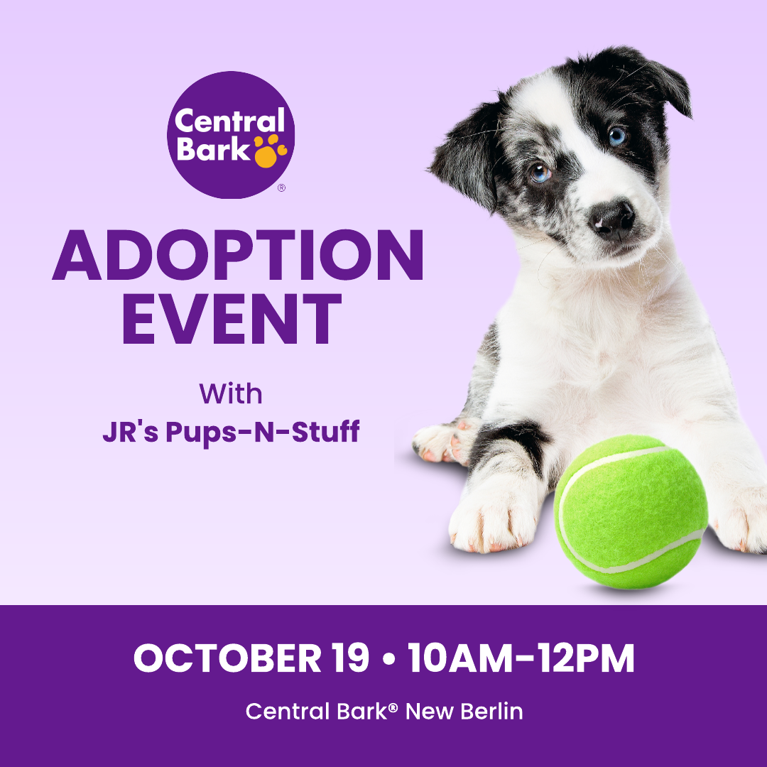 Sunday, October 19th 10 AM-12PM, come meet your new best friend at Central Bark New Berlin! JR’s Pups-N-Stuff will be bringing a variety of dogs & cats that are looking for their furever homes! Approved adopters may be eligible to take home an animal home same day! Volunteers will also be accepting donations of food, chew toys, toys, money, and treats.
