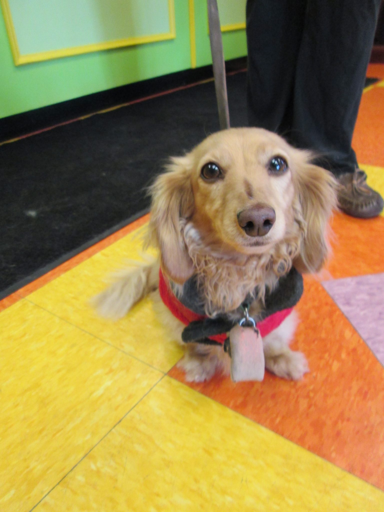 This tiny pooch is Talya, she is a 4 year old Miniature Daschund and is the April Dog of the Month! Talya has been with Central Bark New Berlin since 2009 gracing us with her presence every single Thursday. Each morning she comes in wagging away and can’t wait to hang out with her favorite dogs and handlers. Every single one of the girls whose been on the Central Bark team have had a soft spot for Ms.Talya because she loves nothing more than to be snuggled and loved all day. She enjoys her other Daschund friends Captain, Charles, and she has a particular love for Mee-ko, a Japanese Chin. Talya keeps fashionable by sporting the most adorable winter jackets and by taking advantage of our grooming services. We are so lucky to have such a spunky and loving dog around here to brighten up each and every one of our Thursdays! Congrats Talya!