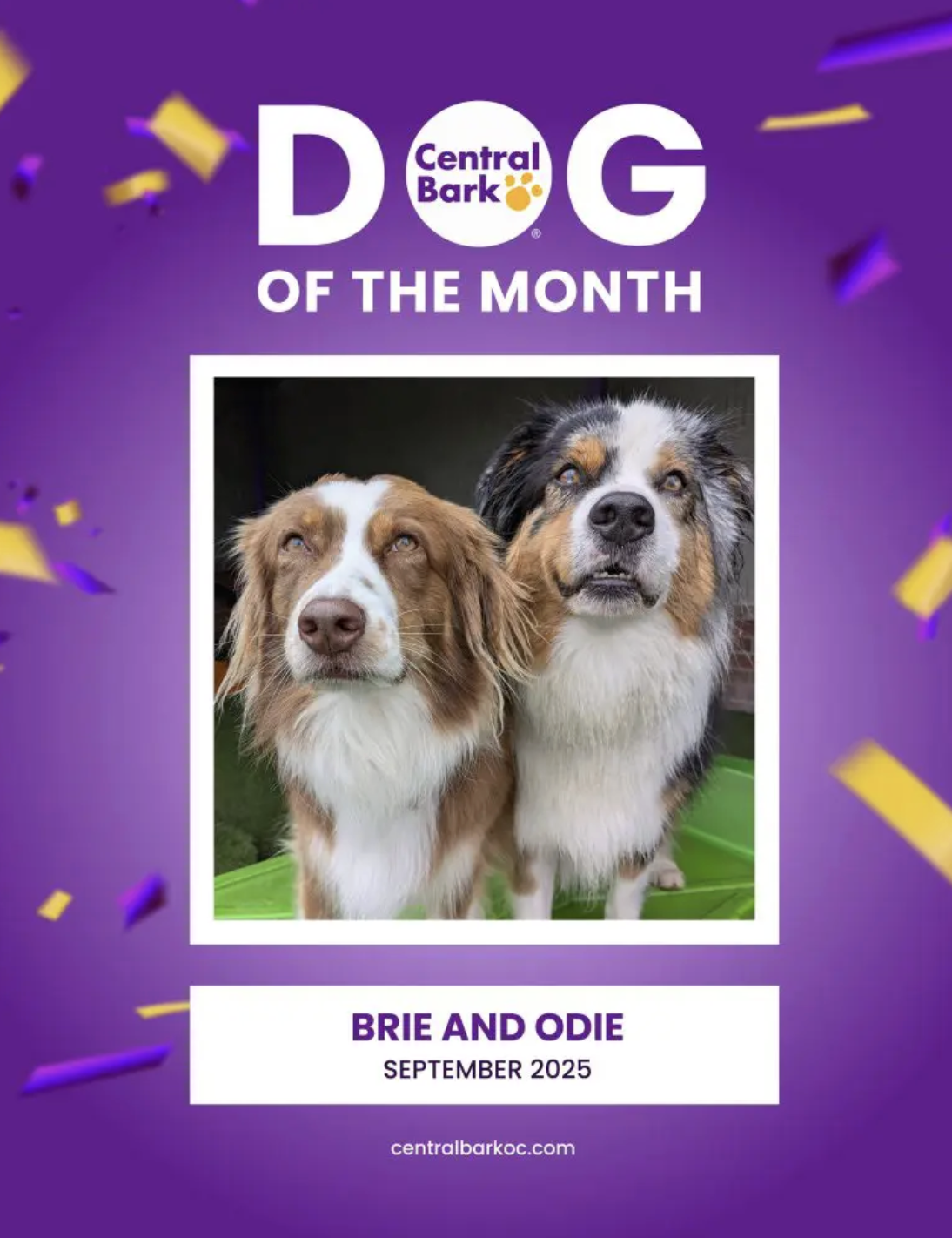 This September, our Dog of the Month at Central Bark Oak Creek is the delightful Australian Shepherd brother-and-sister duo, Brie and Odie! Since joining us in August 2022, they’ve brightened our yard and helped new dogs feel at ease with their calm demeanor, making every playgroup safer and more enjoyable. Their ability to settle quickly at drop-off and adapt smoothly to the routine, combined with their friendly play manners and welcoming energy, ensures that first-timers feel right at home. They also demonstrate smart self-regulation, knowing when to pause and help the group reset.