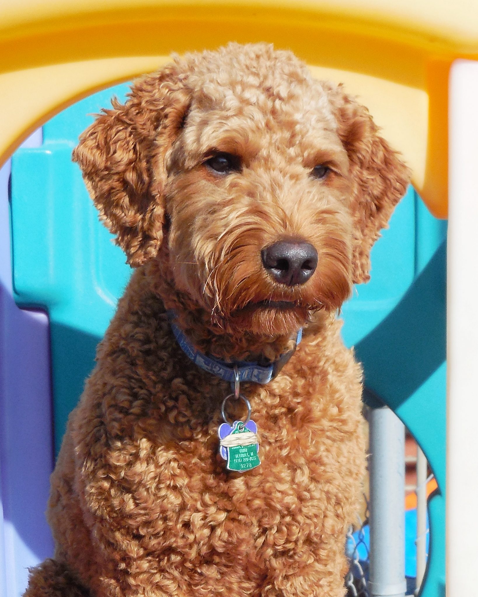Meet Kefir, a Miniature Golden Doodle. We first met Kefir at our winter Saturday Play Group last year. He was just a pup and stayed very close to mom. He usually took a position behind her legs watching as the other dogs ran around the indoor play area. He just wasn’t sure what all the activity was about. Mom was encouraged to bring him every week. Each week Kefir would show a little more interest. It wasn’t long before Kefir became the life of the party, playing and chasing with everyone. He loves to run and fetch. Other times he likes to take an afternoon siesta, particularly on warm sunny days. Congratulations, Kefir, for being the Central Bark in Oak Creek Dog of the Month for May.