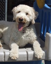 This Golden Doodle is Ruby. She is 2 years old and has already log in over 300 visits to our day care. From the beginning Ruby has been a player. One of her favorite playmates is big Golden Retriever named Nike, who started only a couple weeks before her. But she has other friends as well. Her demeanor allows her to play with both big dogs and little dogs. She’ll play non-stop until it’s time to go in for nap time. Ruby uses this rest time to its full advantage because she is ready for more action when she comes out for the afternoon play session. Congratulations, Ruby, on being Oak Creek’s June Dog of the Month!