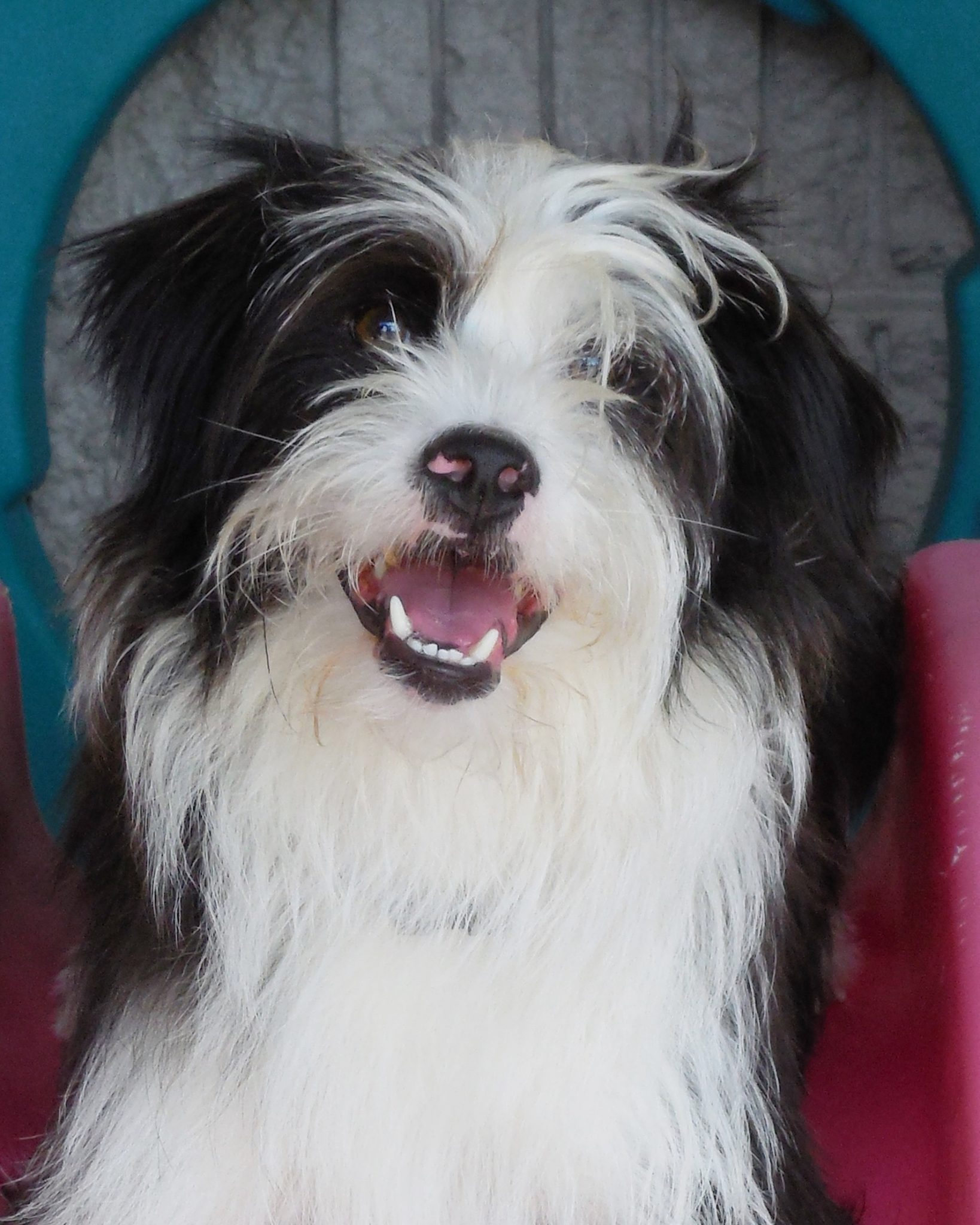 This black and white cutie is Fitz. He just turned 2 years old and has been a part of the pack for just over a year. Fitz is full of energy which he expends playing fetch with the handlers. When he’s done with that he seeks out another energetic dog for a wrestling match. Ella is one of his favorite play buddies even though she’s nearly twice his size. After nap time he’s ready for another round of fetch and dog wrestling. For Fitz it truly is a dog’s life! Congratulations, Fitz, for being Oak Creek’s August Dog of the Month!