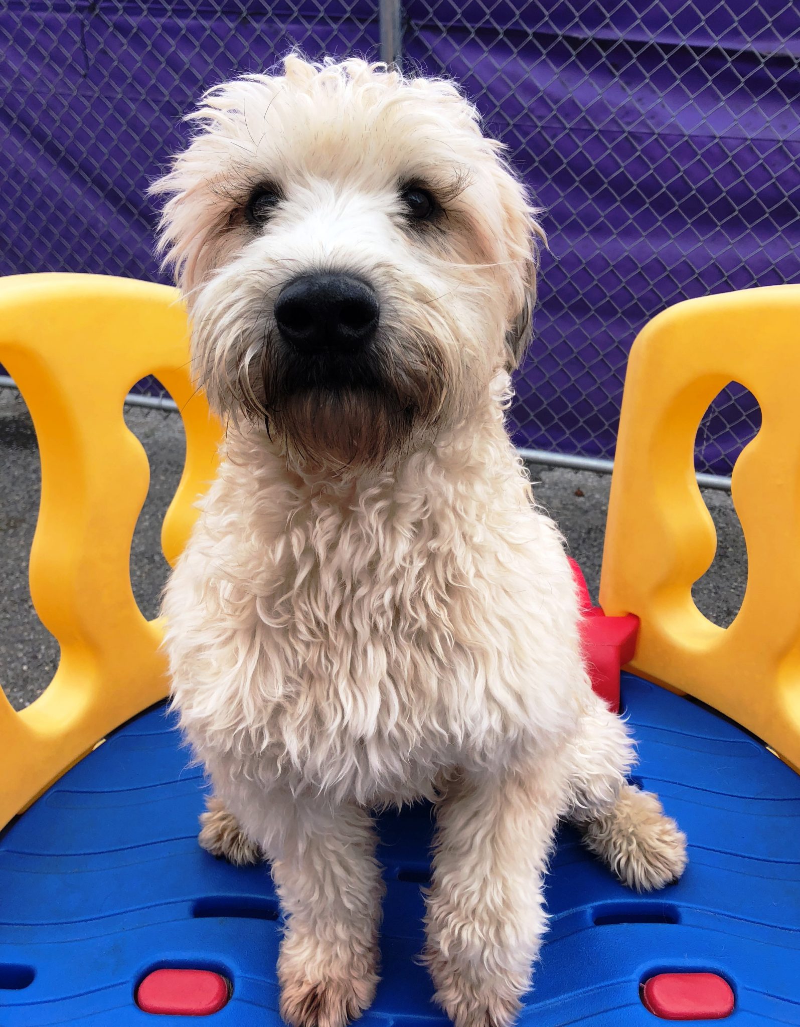 Monty aka Aqua Pup has been attending daycare since 2016 and since then he has made his name known. Monty is a regular here at the bark and each morning when he comes in he is very excited that he can’t control the “Butt Wiggles”. If you don’t find Mr. Aqua pup with his whole body in the water bowl (Because he LOVES Water) then that means he is probably kicking it back with his buds Max,Marvin & Riley. J.