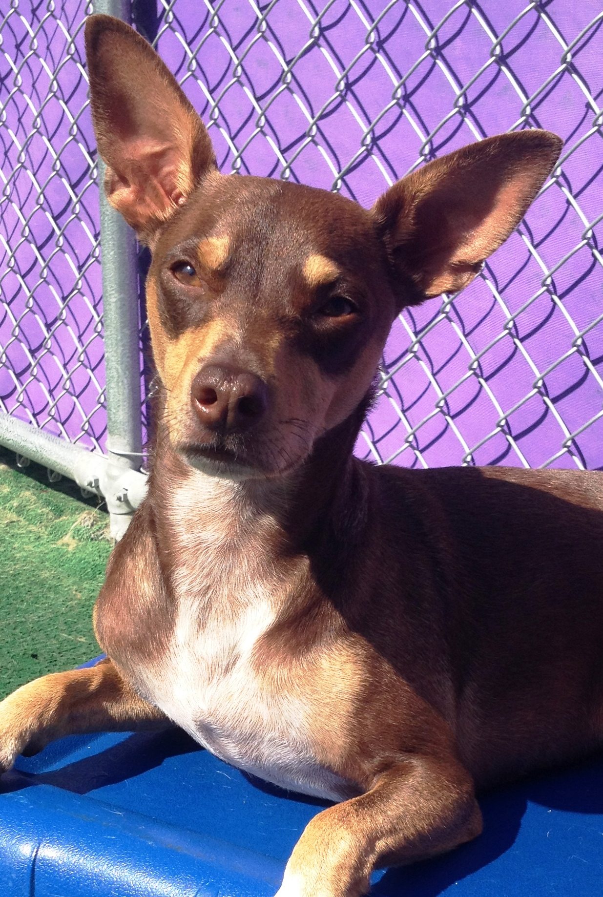 Wiley Cyrus, a 4 year old Miniature Pinscher, has been happily attending daycare since 2015! Wiley came in like a wrecking ball (see what we did there?) all the way from California and made fast friends with Diva, Taylor, and Rain. He made it through his first east coast winter, always in style of course, and has really become a staff favorite! When he’s not basking in the sun, or playing with the ladies, he’s always ready to leap into our arms for some good old fashioned TLC. Congrats on being our August Dog of the Month Wiley!