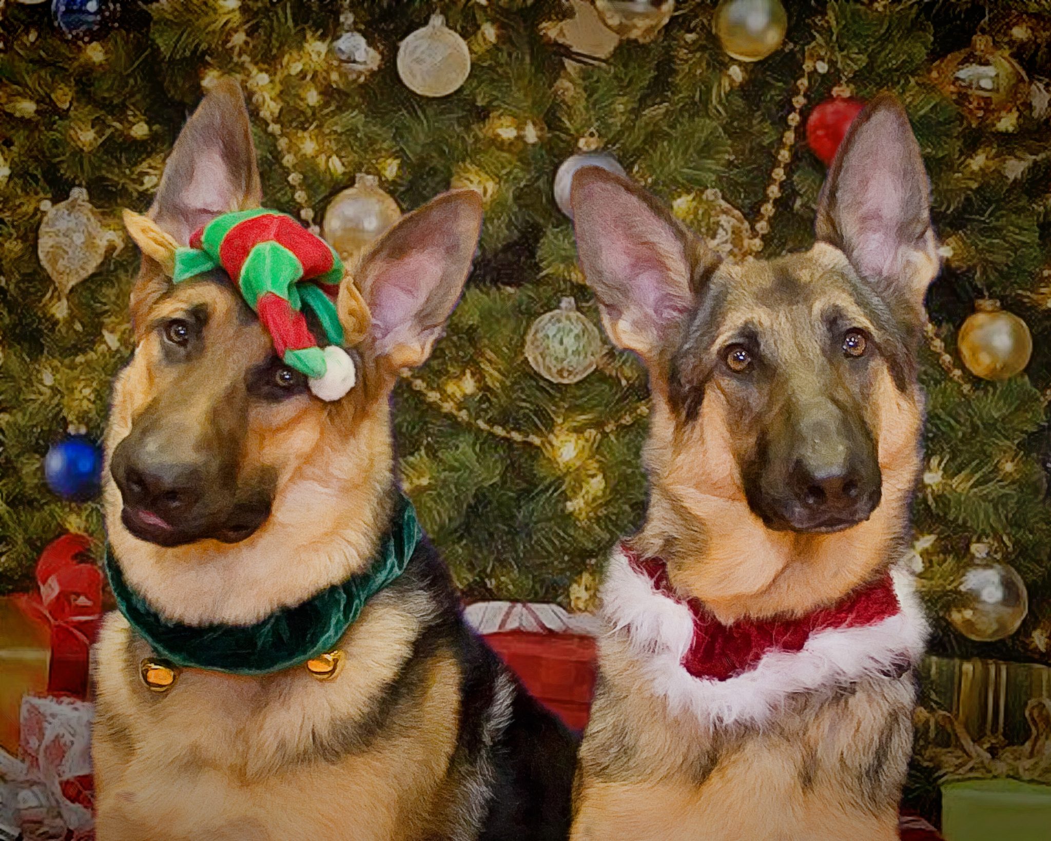 Meet our December Dogs of the Month, Kiowa in the elf hat, and his older sister, Hinakega. They are all ready for Christmas! They love to spend their days playing with their friends at day care, and their friends are many! They have big barks and big hearts. These sweet and gentle dogs love to play tug-of-war with the Goughnuts. They participate in games of fetch and they also enjoy running around and wrestling. Here is a song just for them. Can you sing it?