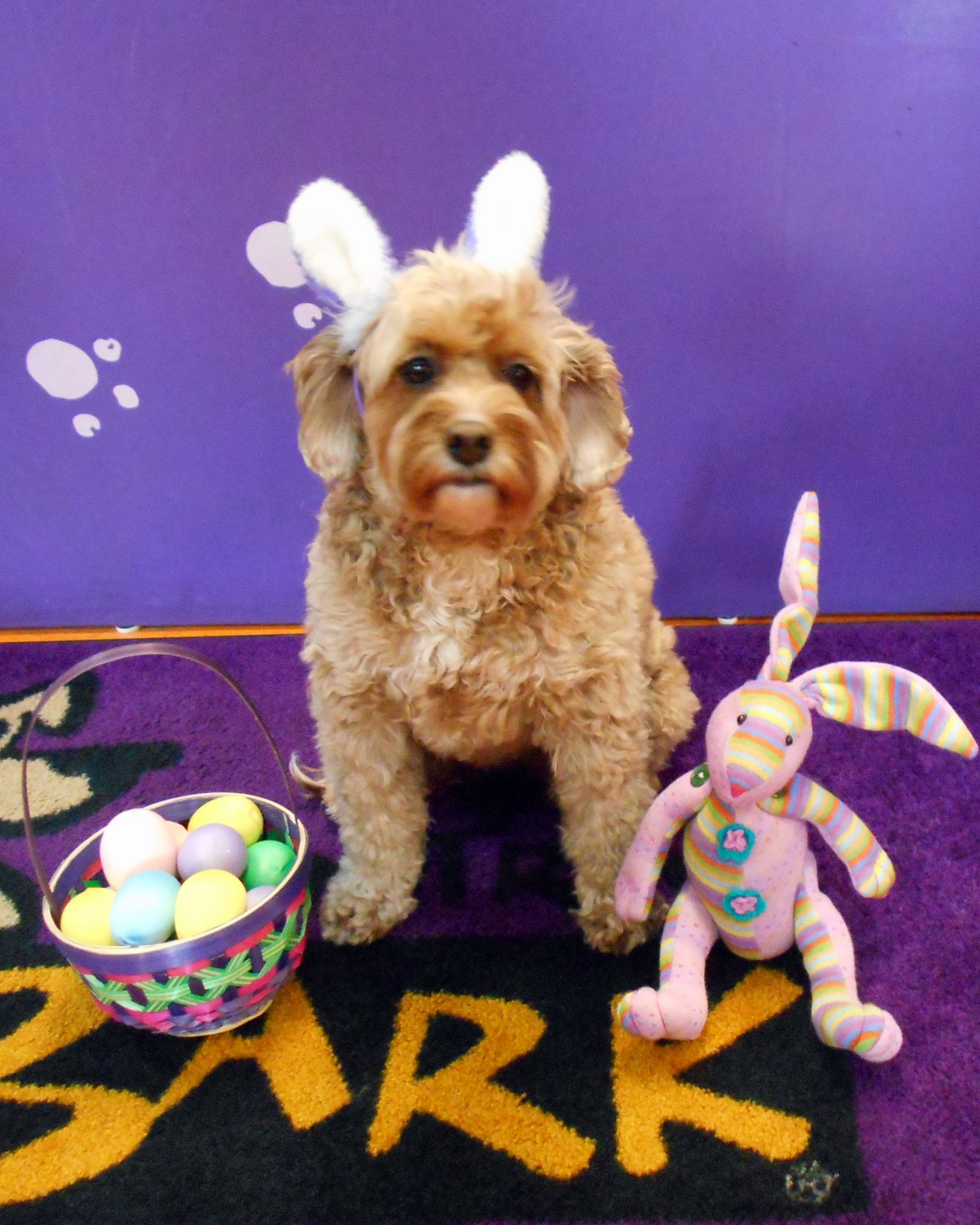 Meet our Easter Lily! This 5 year old Cavalier/Poodle mix has us wrapped around her little toe because she makes us smile so much. You can’t help but smile as Lily runs circles around the play equipment carrying the Goughnut with her friends chasing after her. We know the “look” when she wants to snuggle with us in group. When she needs to smell like a flower she enjoys a day at the spa. Thanks Lily for making us smile and thanks for being such a cute Easter dog! Enjoy the spot light!