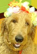 Nine month old Goldendoodle, Lunabelle Pancake, is our ‘60’s girl. She reminds us of a flower child with her laid back “come what may” attitude and her gentle, loving personality. She is friends to all, big and little. Always gentle with the little ones, they love to climb all over her. She does have her moments of being a rebel, especially when she and her best friend, Zelda the elf, get together. They run and tumble, and encourage others to join in the fun. Peace Lunabelle. You are our sweet little hippie girl and an inspiration to us all.