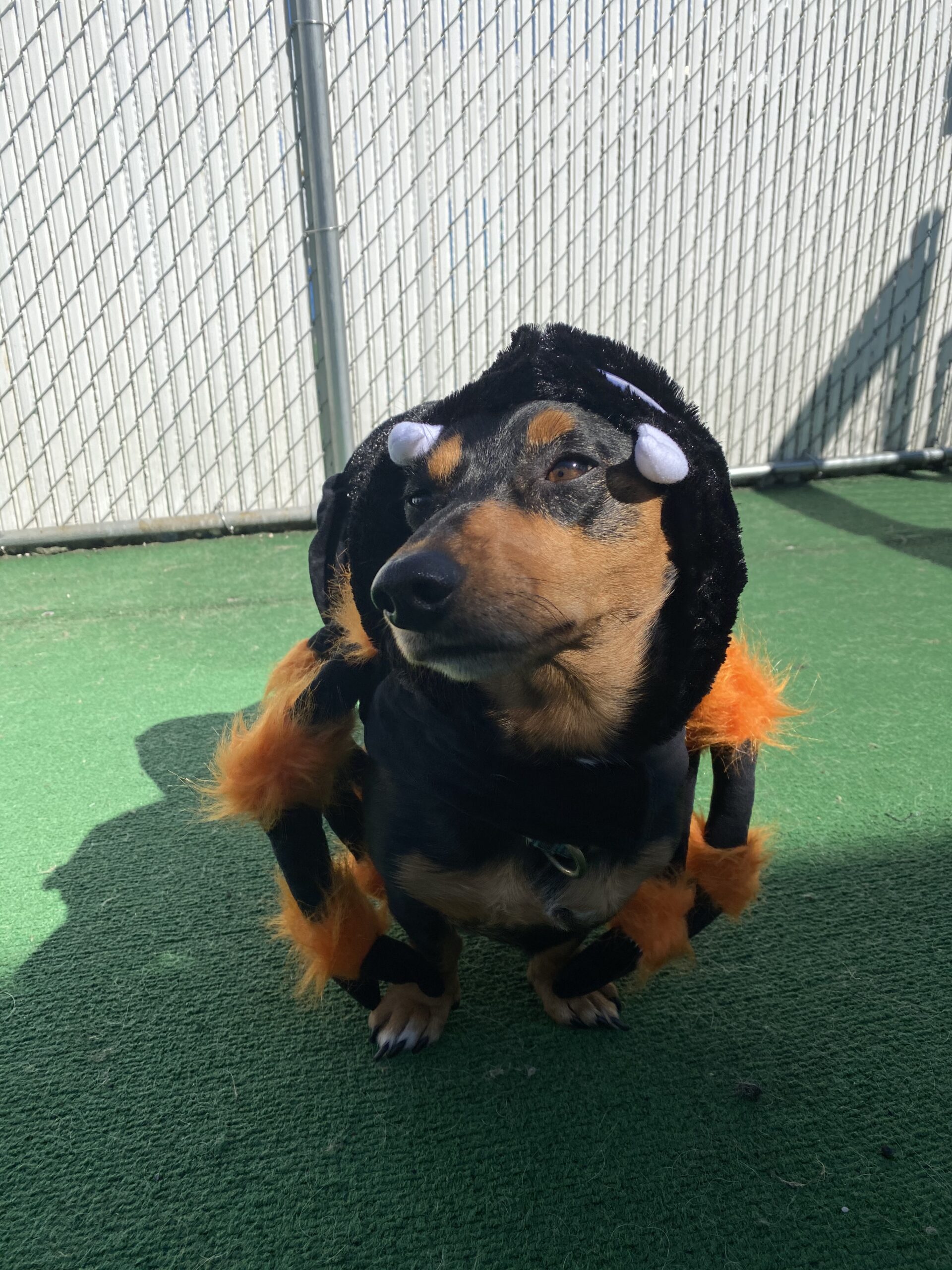We are celebrating this Halloween with one of our favorite finds, Blanche! Blanche is a 3-year-old dachshund who has been coming to Central Bark Sheboygan since she was only 8 months old! There is no better way to start our day then seeing our sweet Blanche run through the doors! Every morning she makes sure to find the staff and let them know she has arrived! When Blanche comes into group, she makes sure to find her handler for some quick snuggles. After her snuggles, she politely asks her handler to play a game of fetch with one of her favorite toys. Once Blanche is finished playing with her humans, she finds some of her best fur-friends to run around with. Some of her friends include Murdoch an adorable 1-year old maltese, Ruby N a beautiful 6 year old lab mix, and Link a very handsome 4 year old goldendoodle! After a fun and exciting day of playing you will often find Blanche snuggled up by her good pals Coco & Heinz! Congrats again Blanche you truly deserve the spotlight!