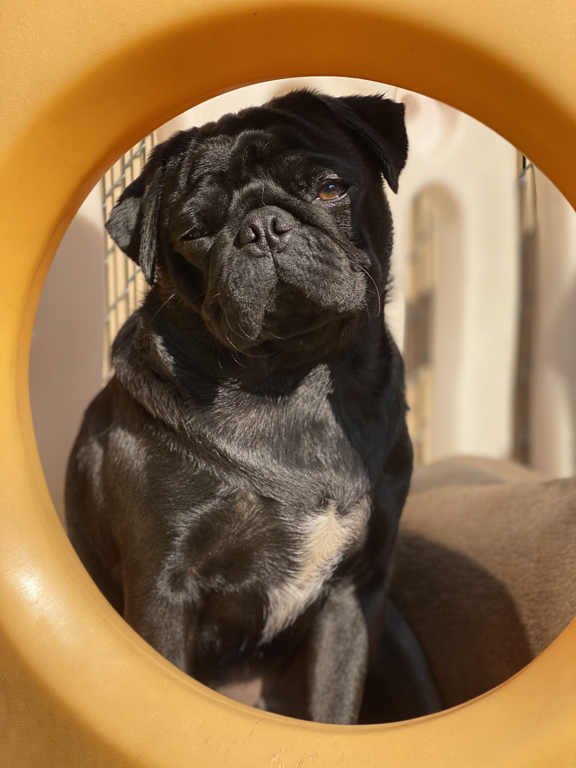 Bug has only been coming to Central Bark for about 7 months, but he has quickly become a staple in our everyday routine! It is always such a joy to see Bug and his dad, Larry, pull up in the morning for a day of fun! Bug is a well-rounded Pug who makes friends very easily. He can be found teaching new puppies to play appropriately, as well as getting rough and tumble with his more seasoned friends. His closest friends include, Magnum and Marlin, Ozzy, Coco and Oliver Blu! On summer days, Bug enjoys taking a dip in the pool. Bug knows how to unwind though too; he can be found snuggled up in his circle bed at nap time. Snug as a Bug in a rug! We love you Bug! Congratulations on being our Dog of the Month!