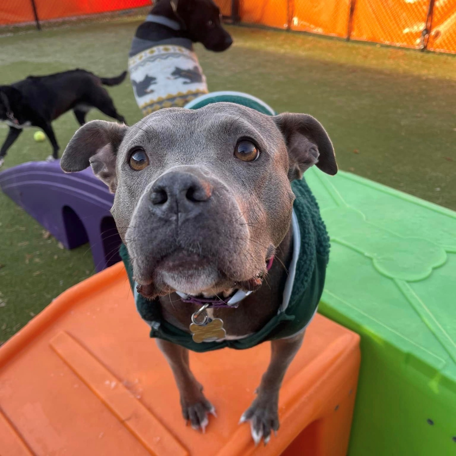 Bugsy has been with us since November of 2020 and has brought her best energy and attitude with each visit! Bugsy is one of our Red Group friends that attends daycare on Thursdays. Some of Bugsy’s favorite buddies out in group are Bruiser, Sloth, Losa and Gus.