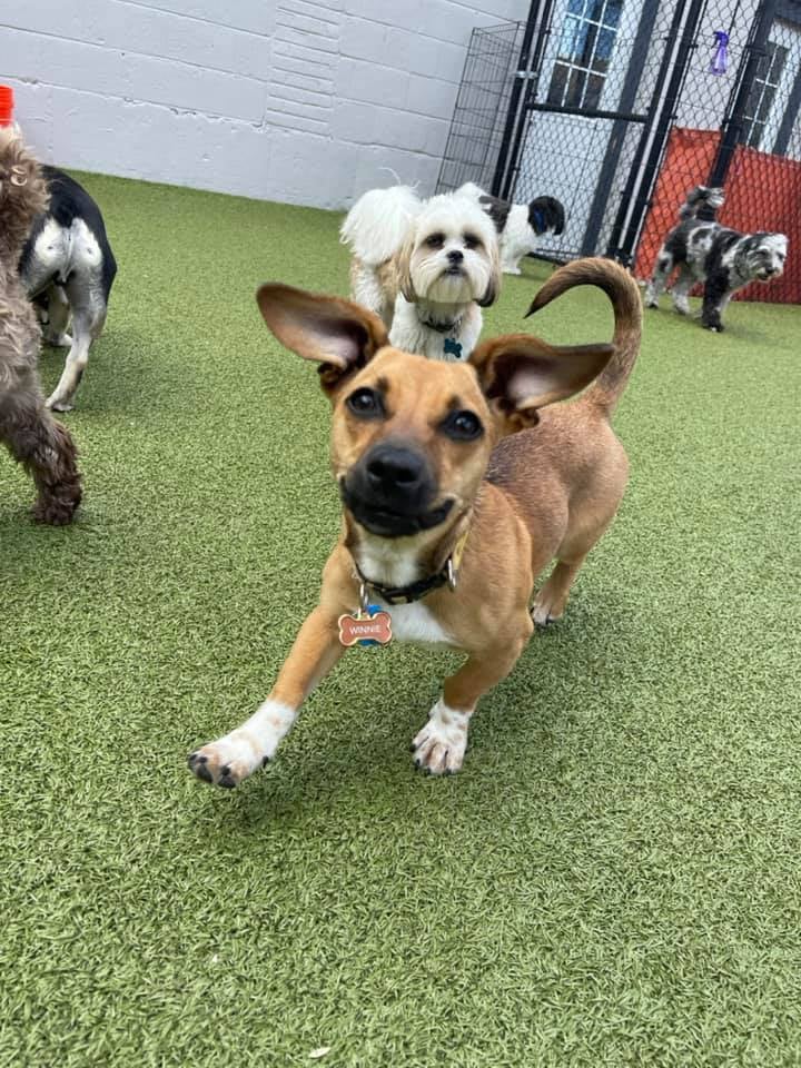We are thrilled to announce Winnie M. as our July 2021 Dog of the Month! This pint sized cutie joined our family this past April and hasn’t stopped making us laugh since. She is always happy and eager to make friends in green group and loves each new dog she meets. When she is not chasing her friends, she is great at participating in group sits! We are so lucky that Winnie’s mom chose us to be her doggy daycare and we look forward to making many more memories with this girl as she grows in our program. Congrats Winnie, we love you!